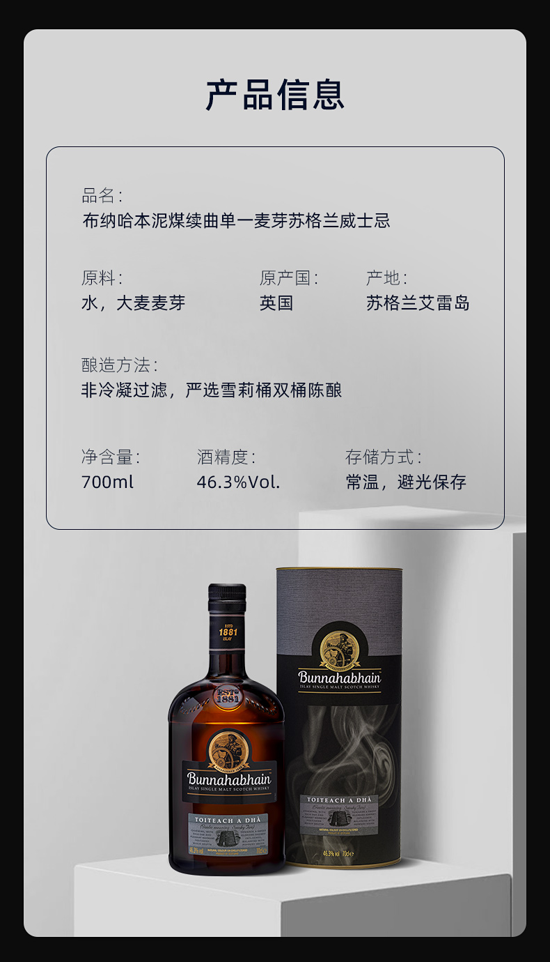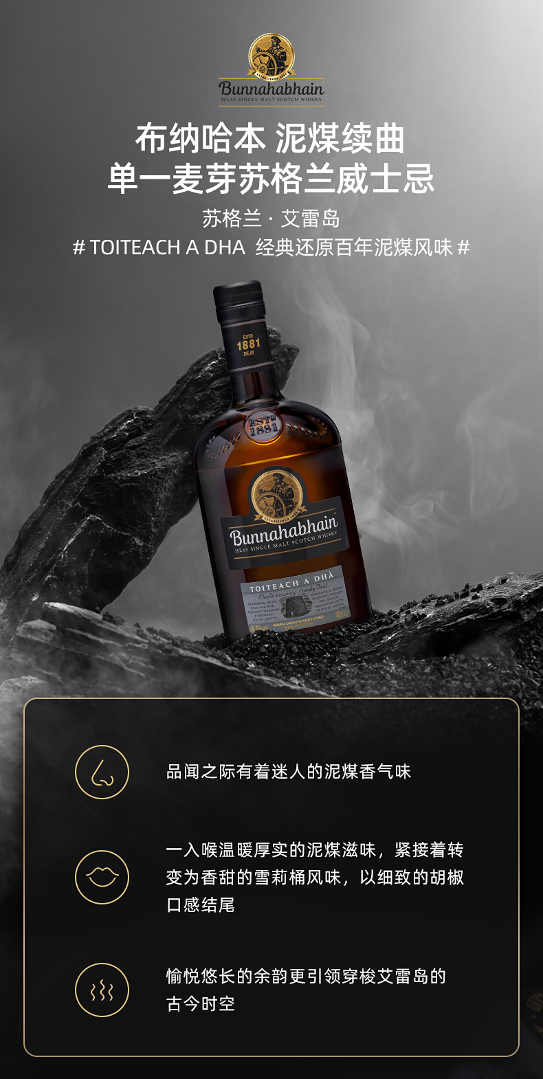 布纳哈本泥煤续曲苏格兰单一麦芽威士忌