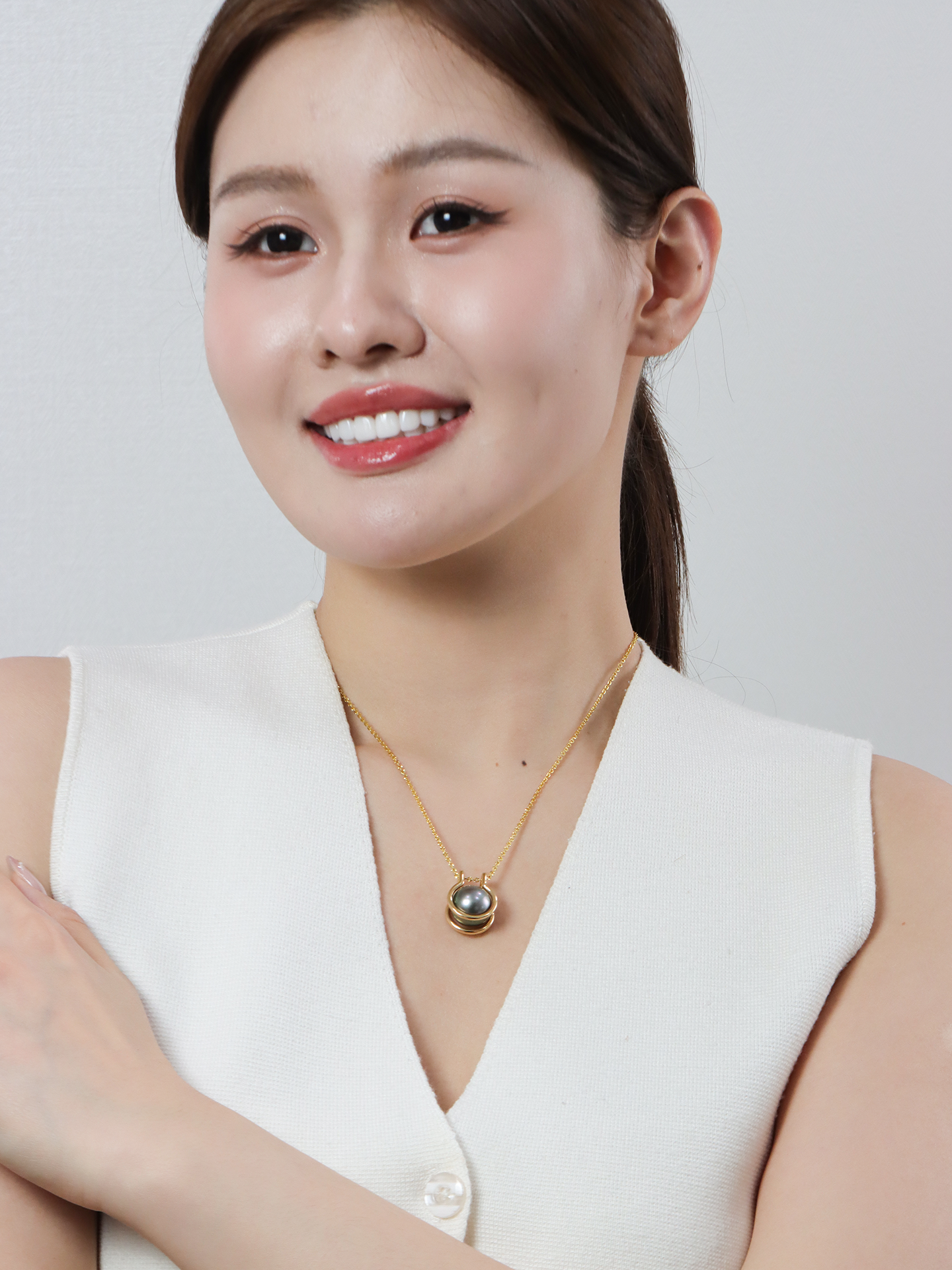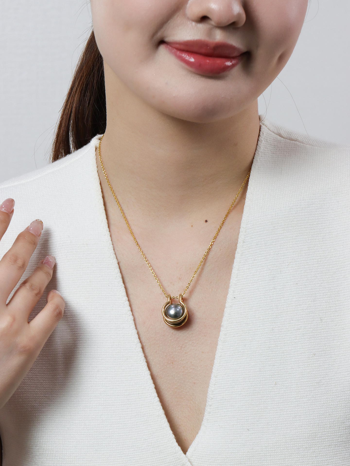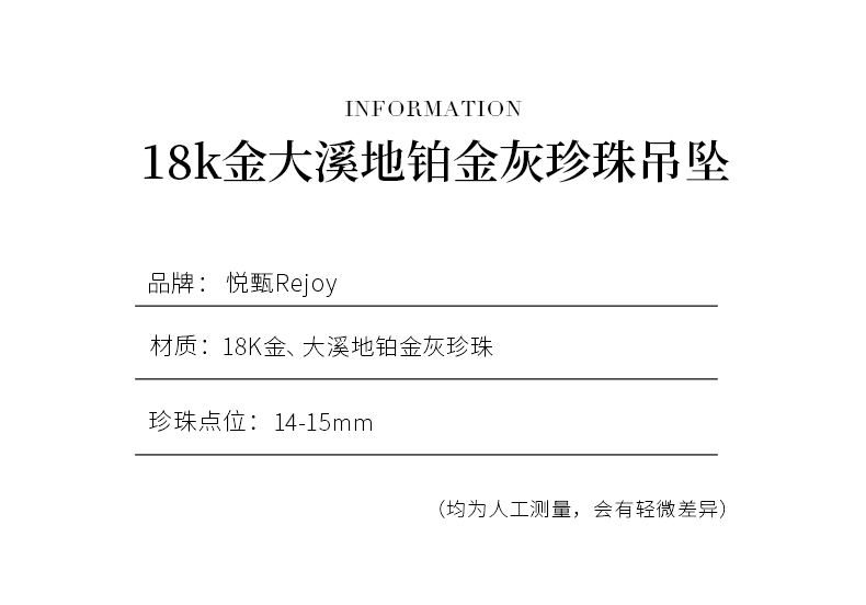 【挚友限定】18k金大溪地铂金灰珍珠吊坠14-15mm