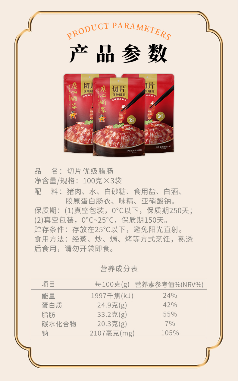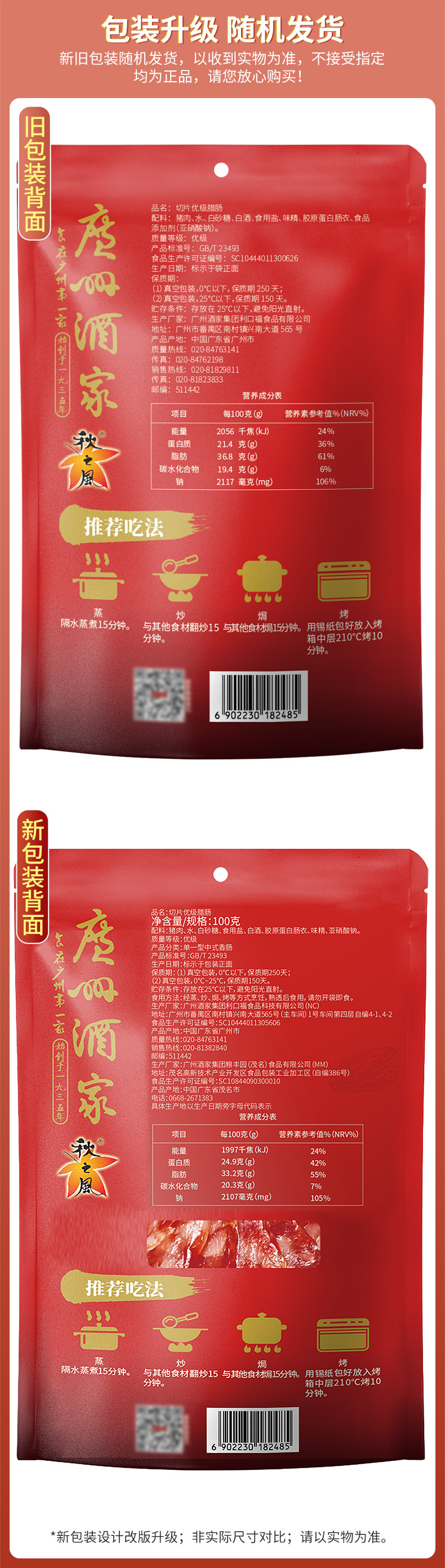 广州酒家 切片优级腊肠100g*3袋广式腊肠秋之风广东腊味送礼手信
