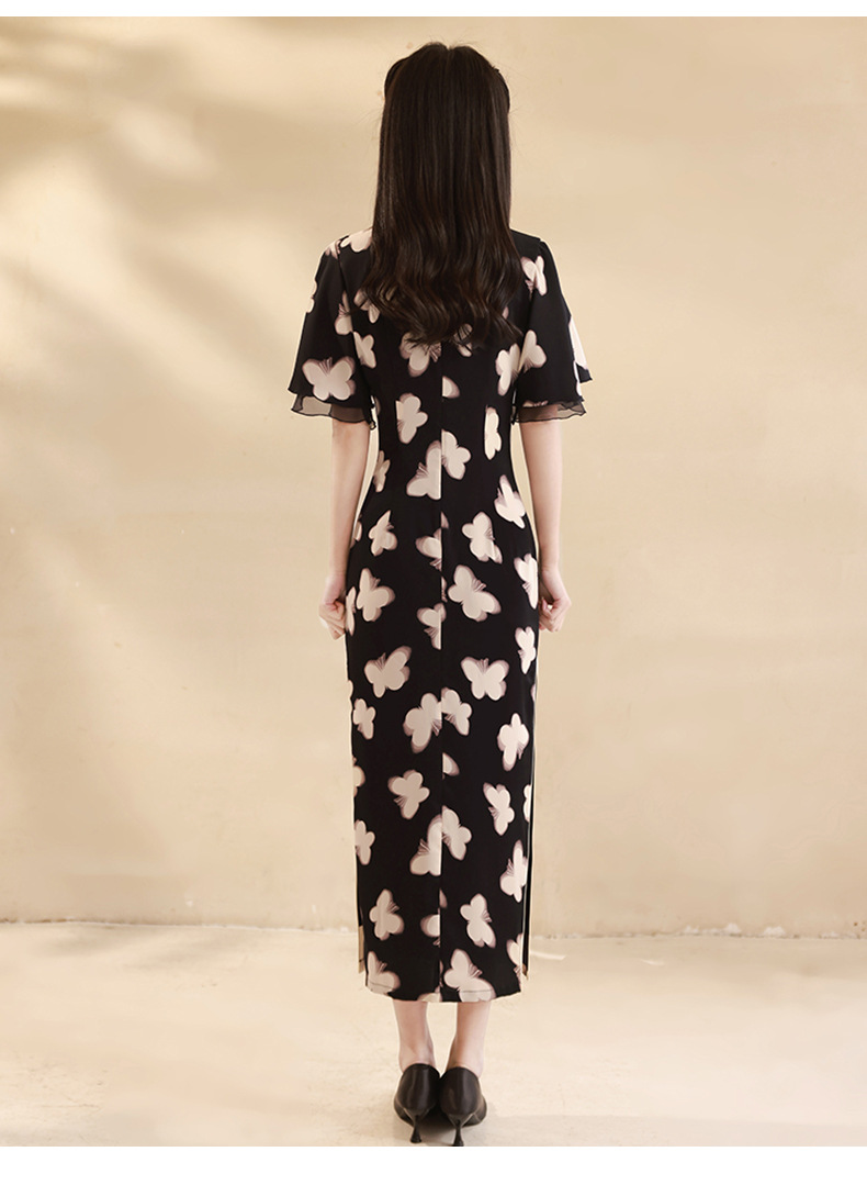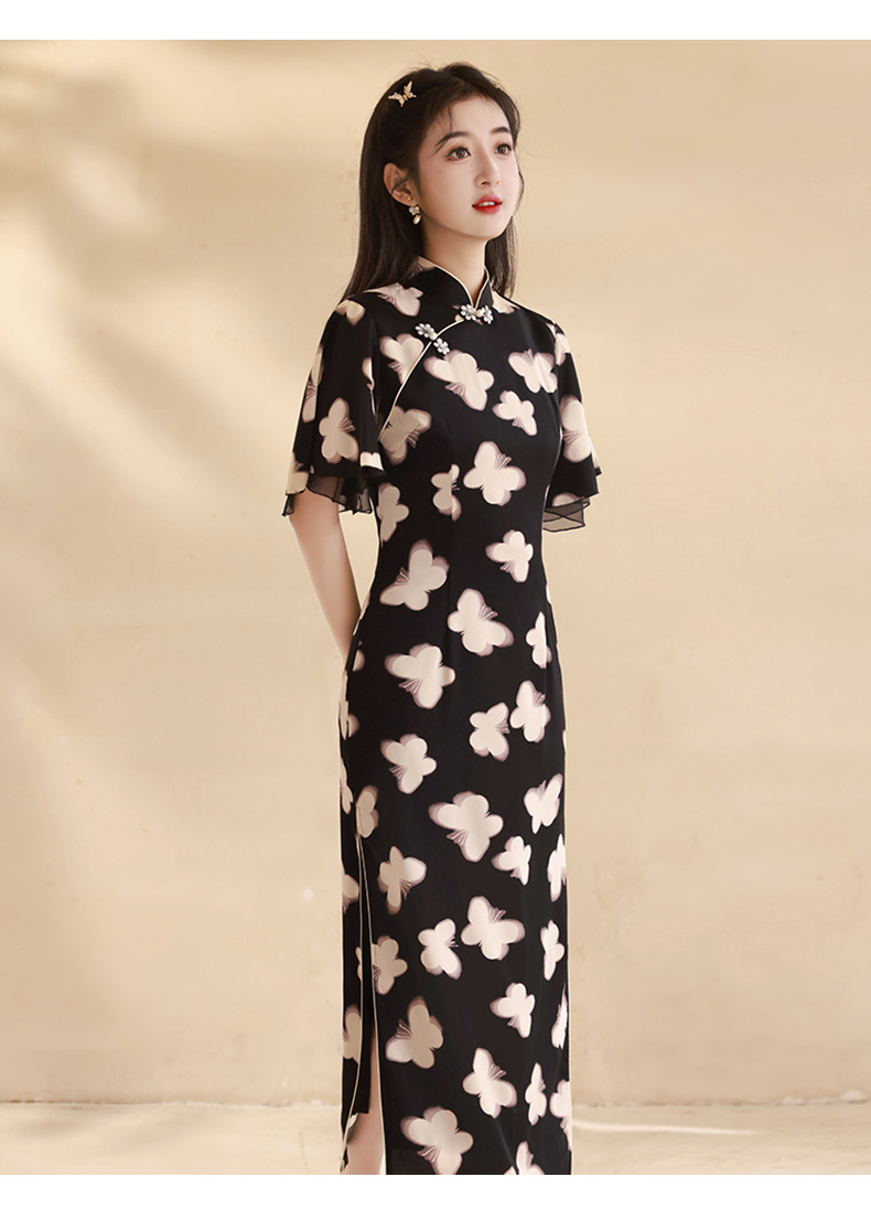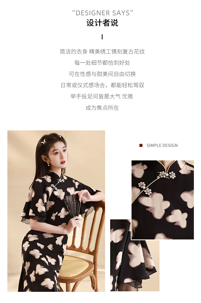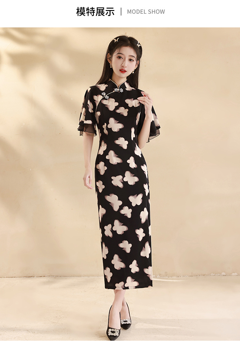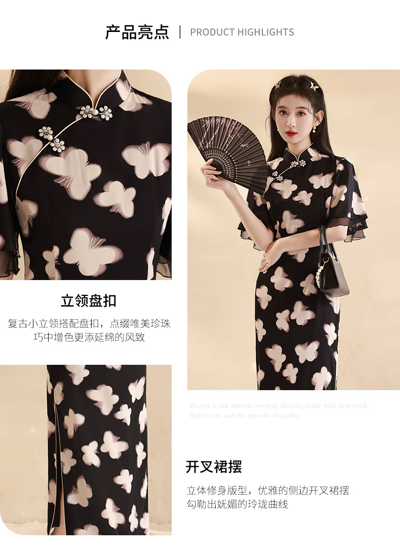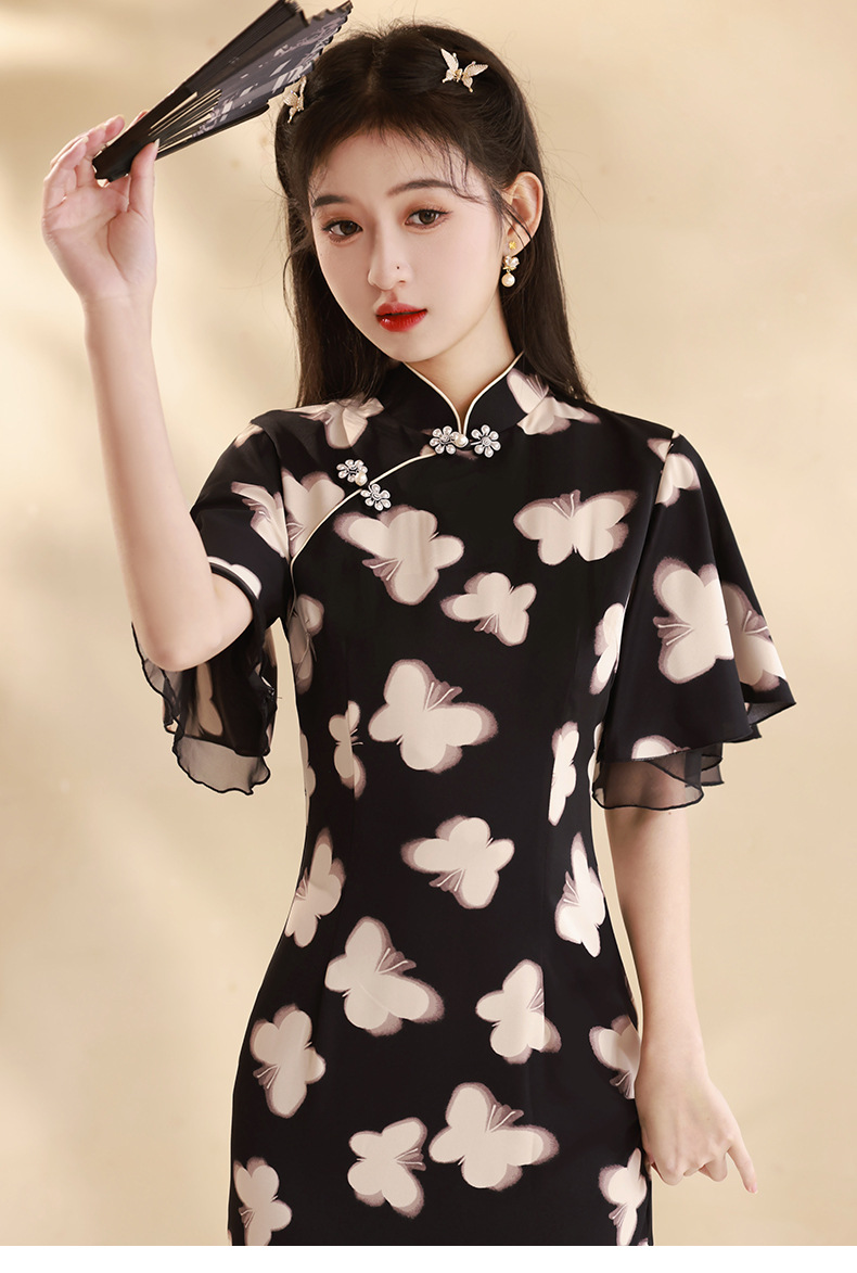 春夏新款,改良旗袍年轻款蝴蝶复古新中式小个子显瘦旗袍XL-24027