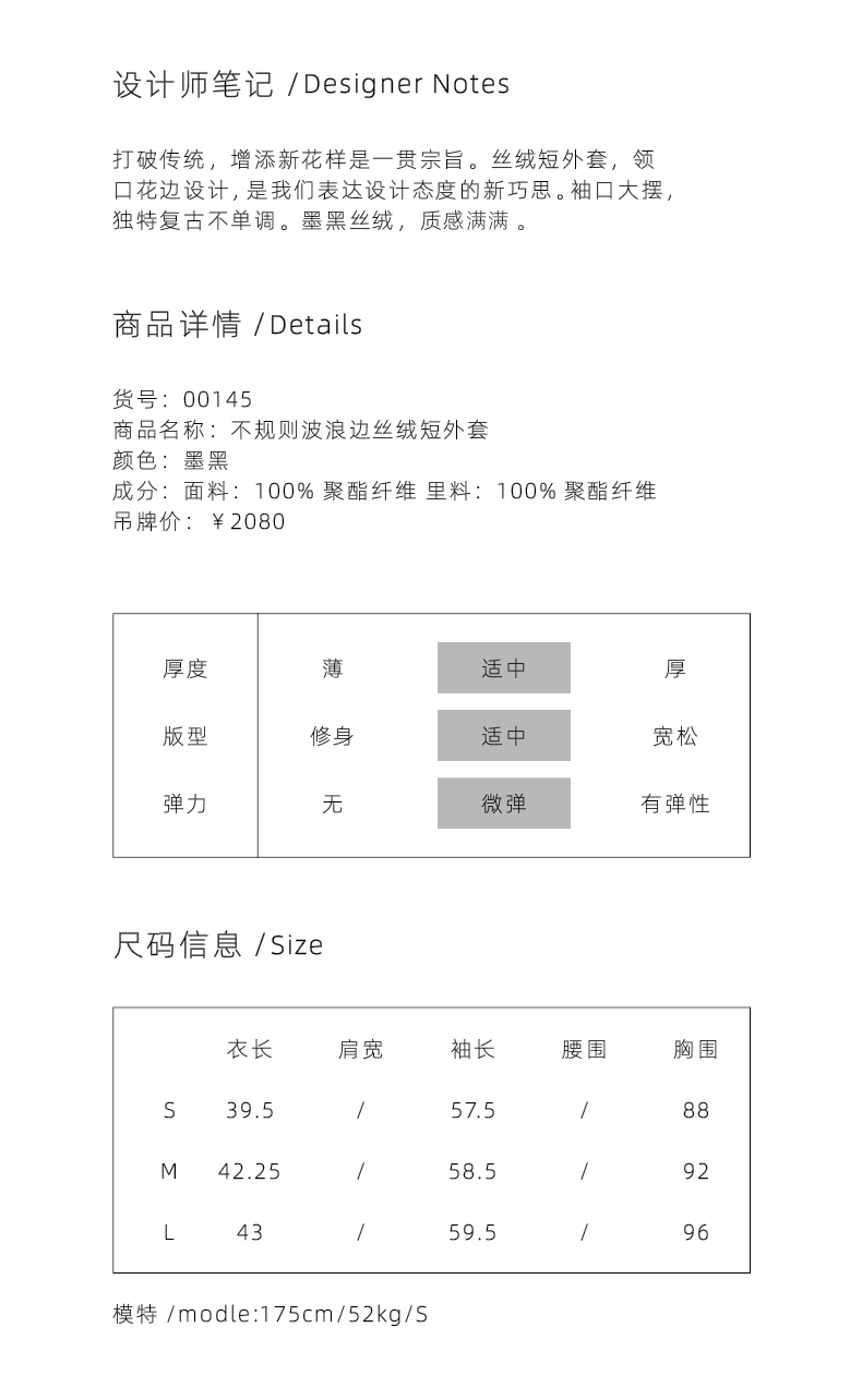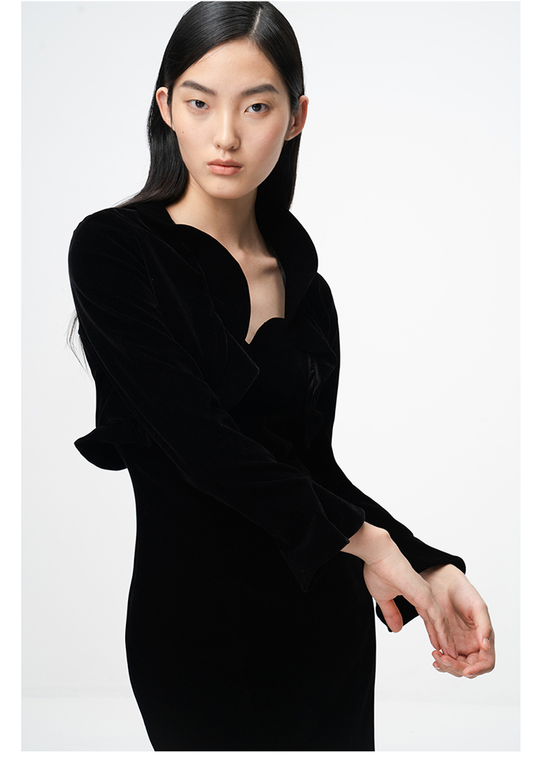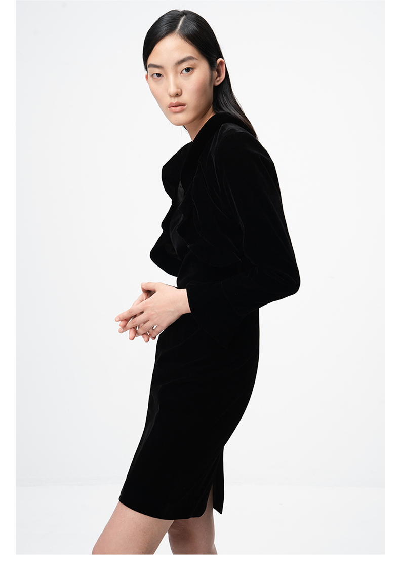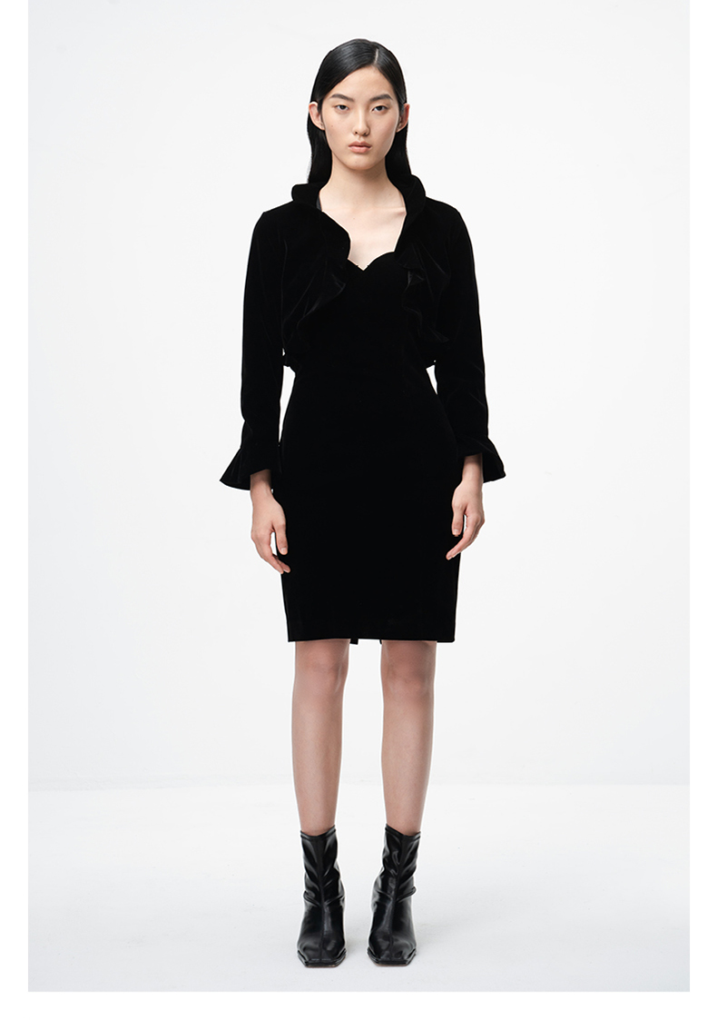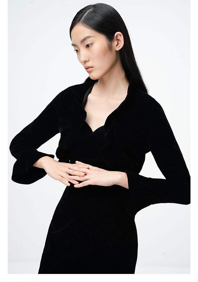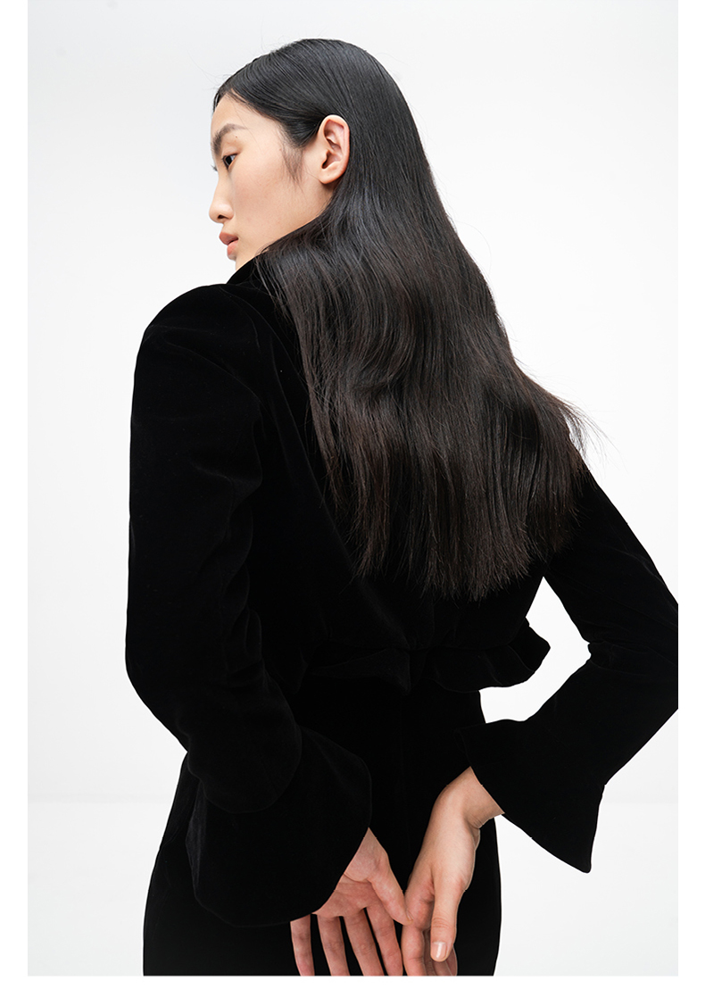 AtelierMissLu /Celestina -墨黑丝绒荷叶领短外套