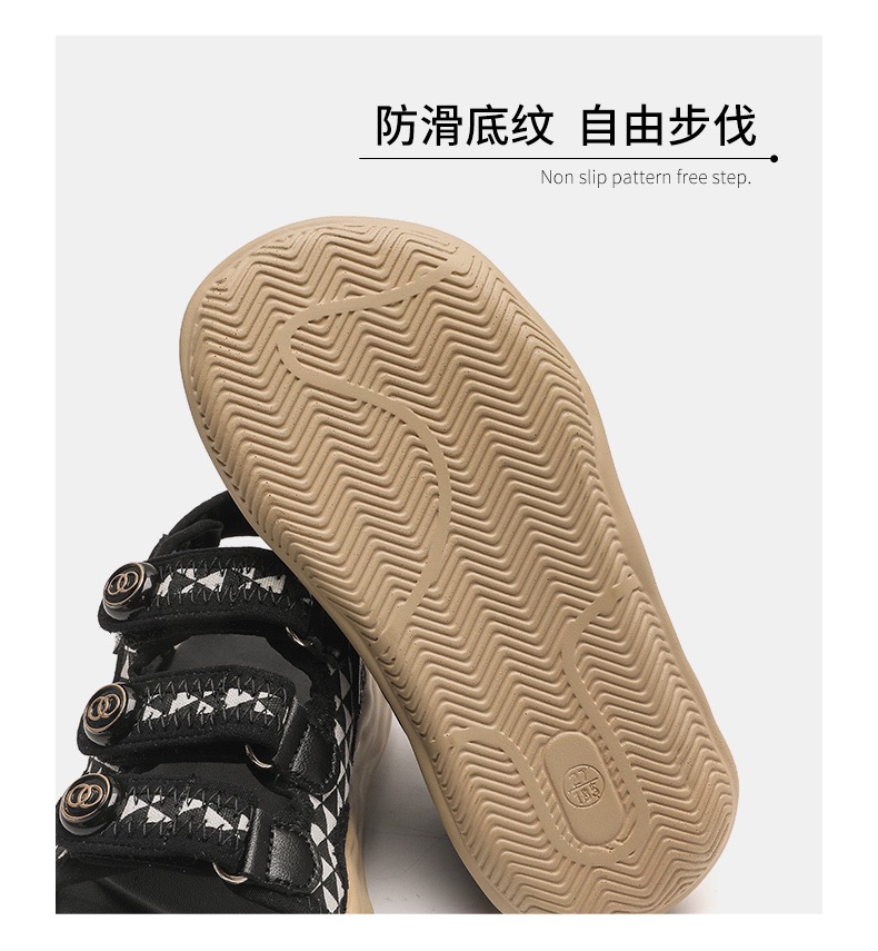 2、精心挑选的合成革+织物鞋面,柔软舒适,魔术贴设计,穿脱非常方便,鞋底轻便柔软易弯折,防滑耐磨,减轻行走的负担哦。