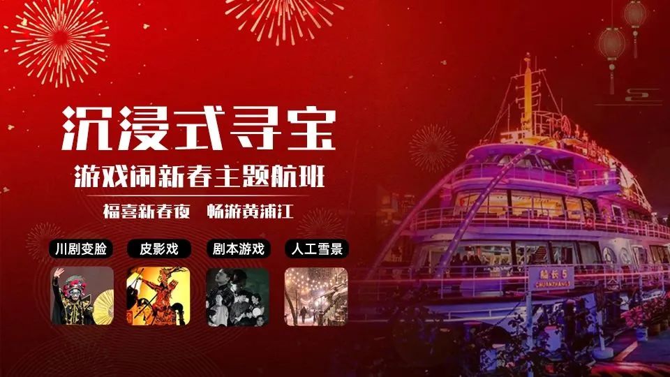 【黄浦江新春游船】遇见民俗国粹,梦回1930新春主题航班,船游黄浦江、传统民俗表演、沉浸式剧本寻宝游戏等精彩活动,陪你过新春!