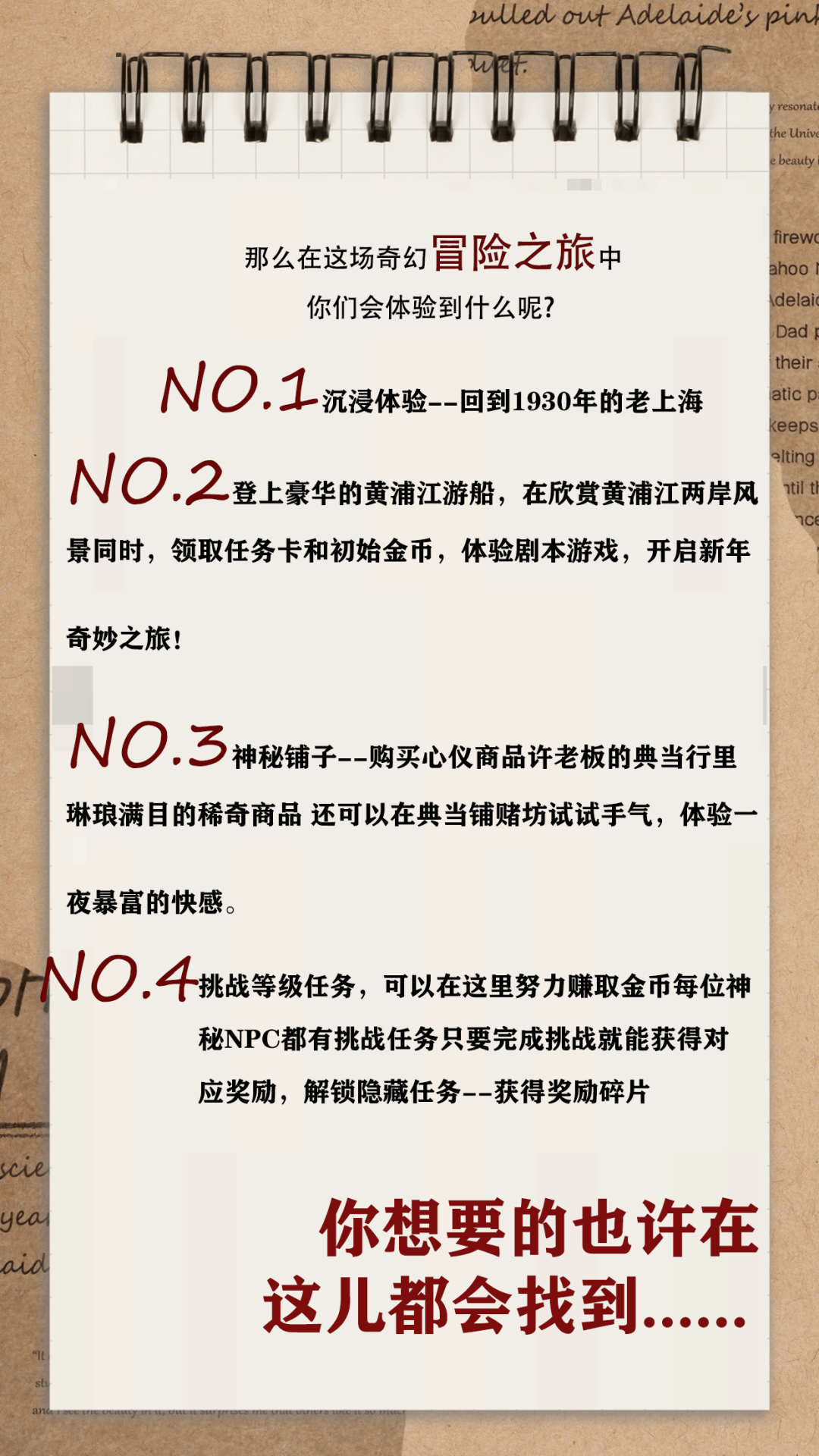 以上海旅游特色项目黄浦江游览为基础,加上中国传统民俗国粹表演,更有沉浸式闯关寻宝游戏,打造游玩一体的新春特色主题航班