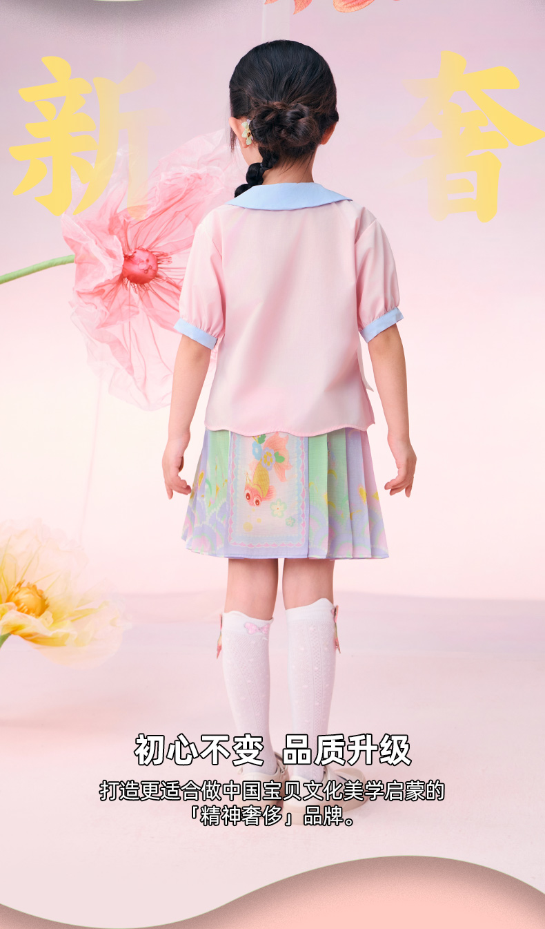 年衣童装2025春夏新款马甲衬衫古装金玉年年短款马面裙