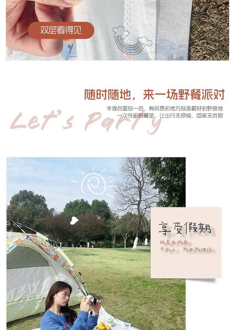 【39.9/任选3件】双层无纺布野餐垫,无需清洗,加大尺寸45%!一次性野餐垫草坪防潮户外加厚春游野餐垫露营便捷郊游海边沙滩垫-QQ--ry