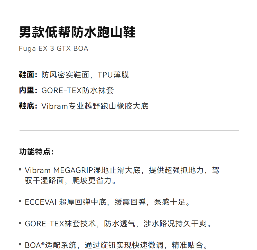 KAILAS凯乐石 男款低帮防水跑山鞋(Fuga EX 3 GTX BOA) KS2533159