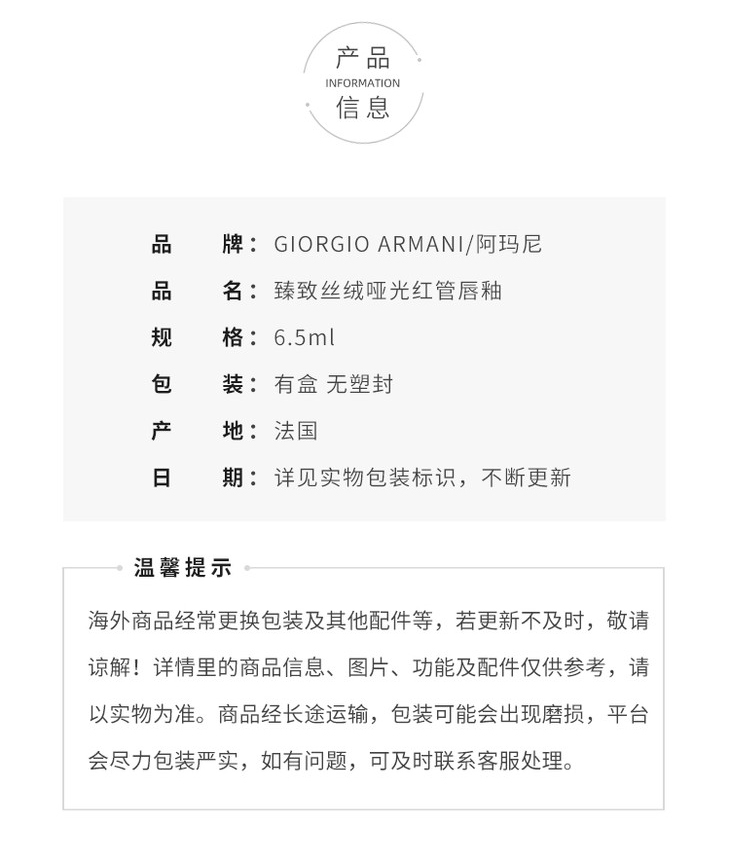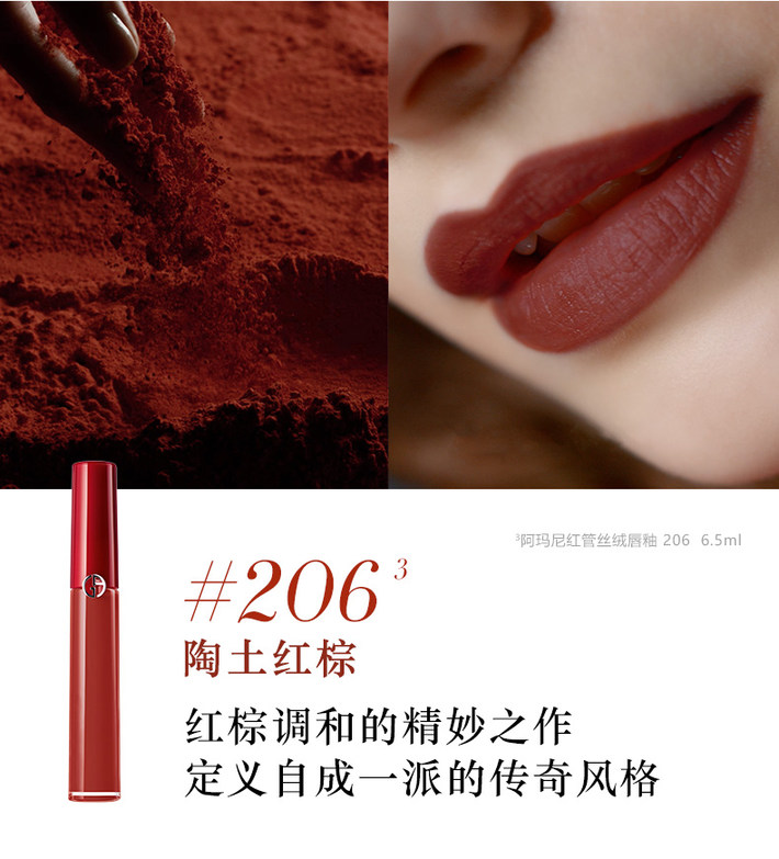 阿玛尼红管唇釉405#206#415#214# 臻致丝绒哑光红管唇釉 6.5ml ARMANI/armani