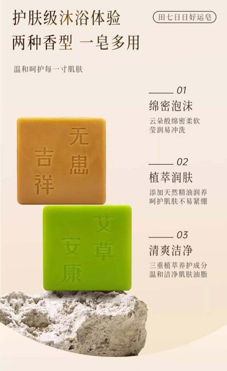 田七日日好运皂套装洗手洗浴植萃洁净清新老品牌纯手工皂128g*4块