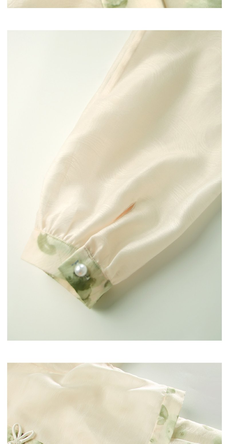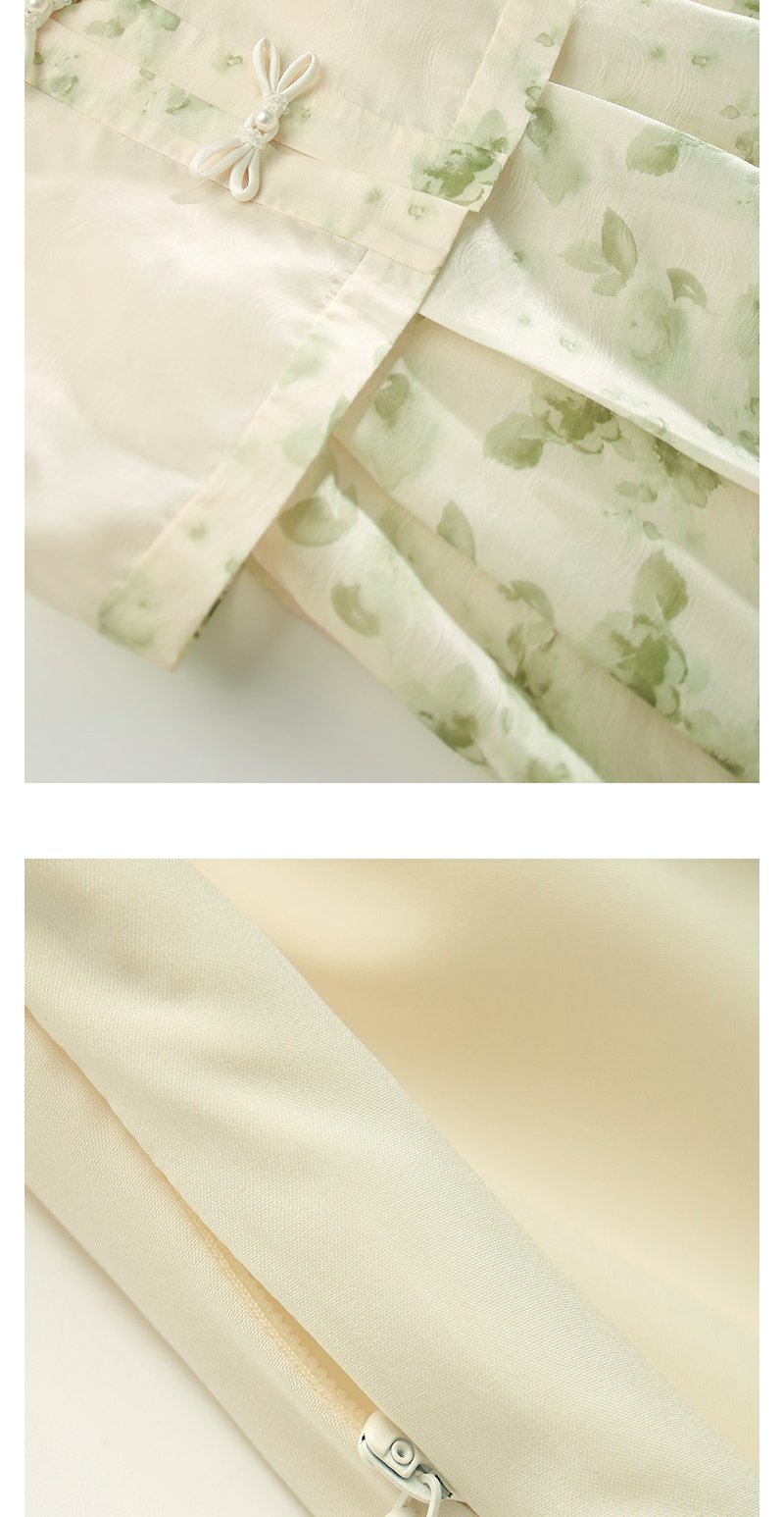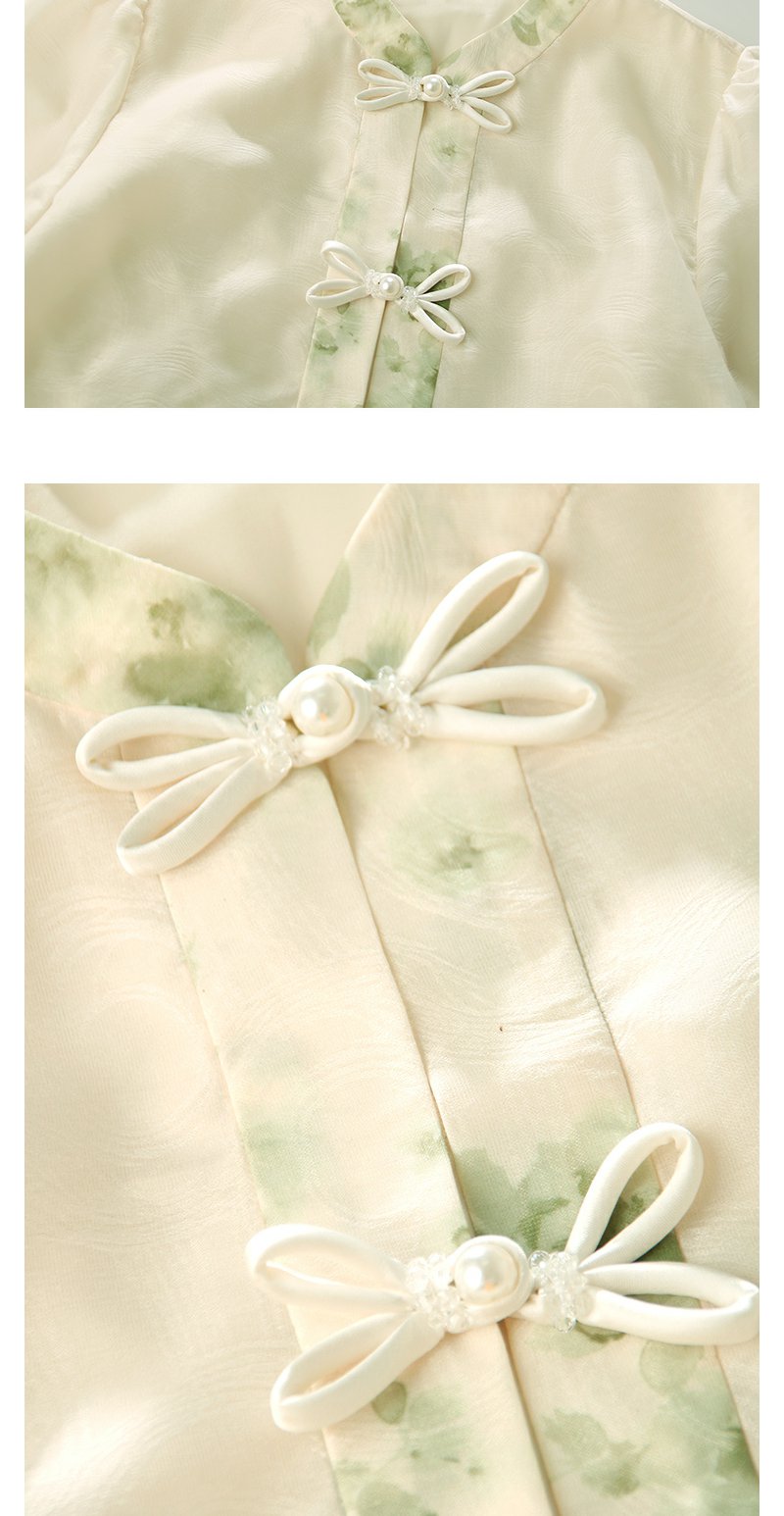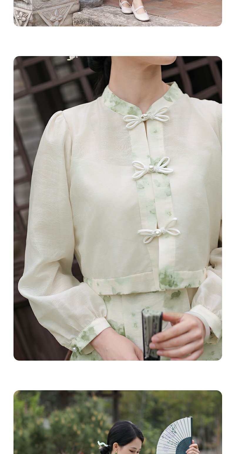 勿忘花绿色复古假两件改良旗袍连衣裙春季新款中式国风裙子