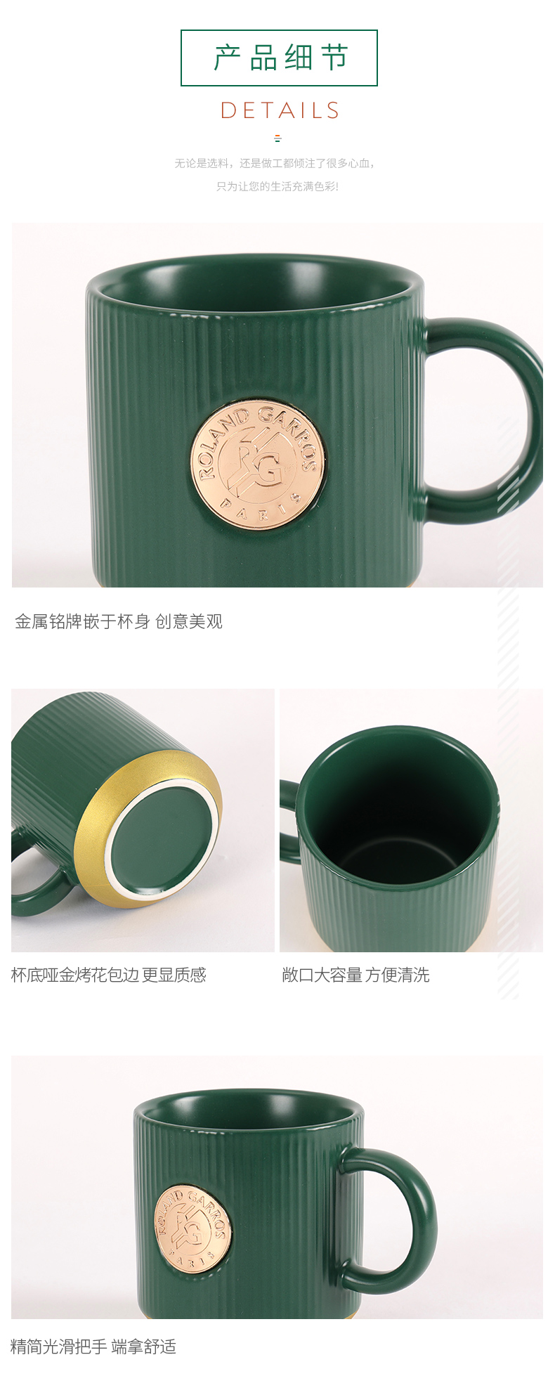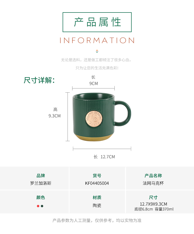 罗兰加洛斯法网官方周边水杯铭牌马克杯咖啡杯杯子陶瓷大容量茶杯