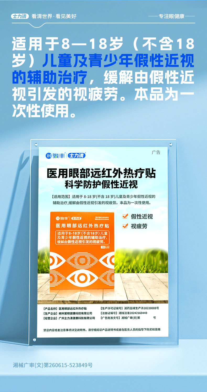 骏丰士力清医用眼部远红外热疗贴辅助治疗假性近视