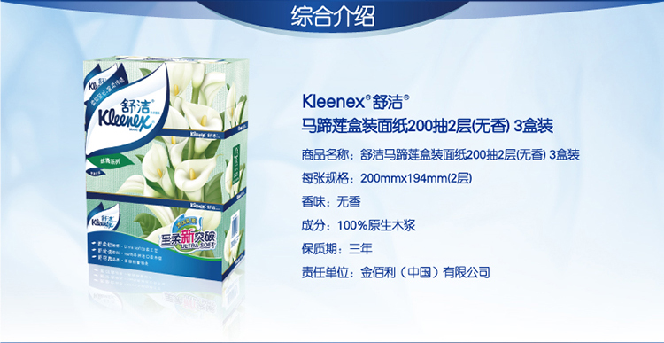 舒洁(Kleenex)抽纸纸巾 马蹄莲盒纸面巾纸餐巾纸 盒抽 200抽*3盒