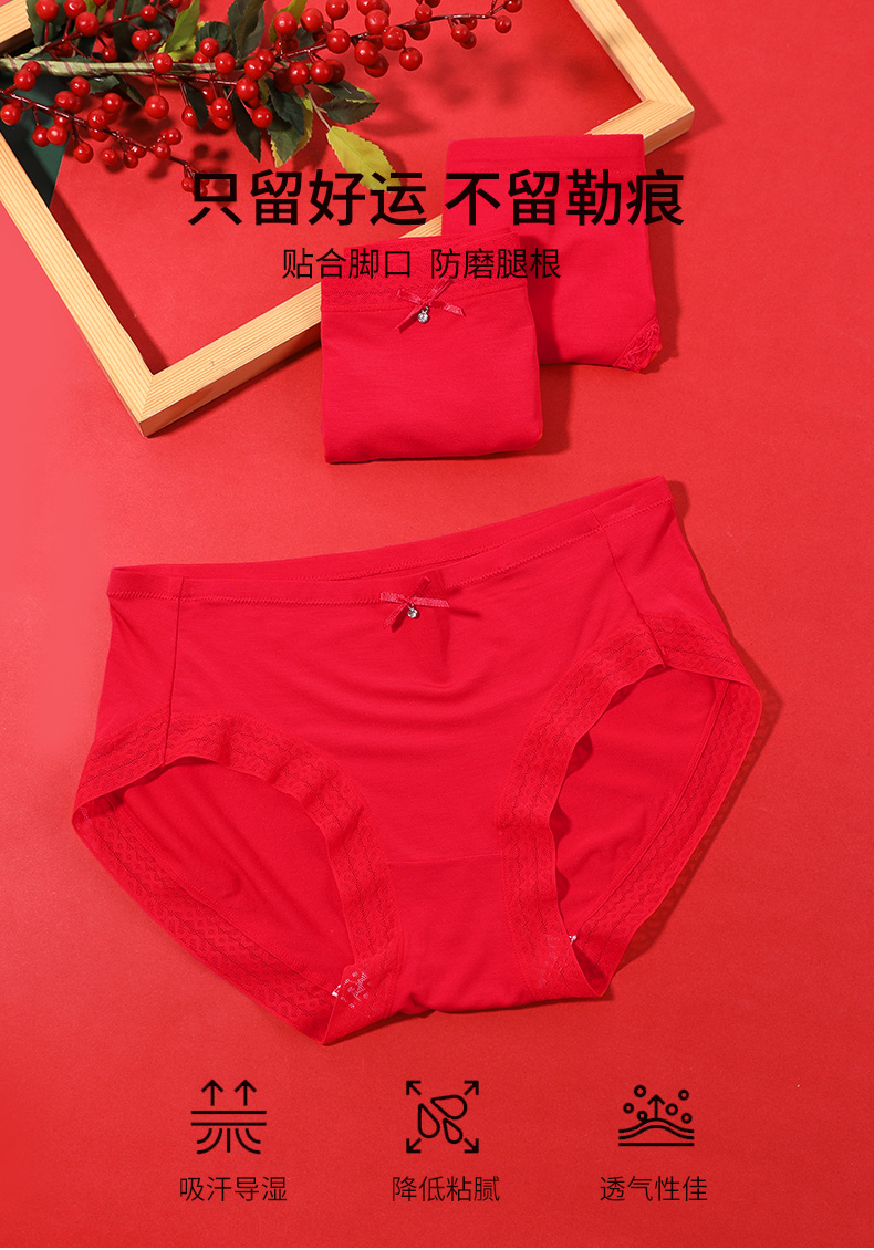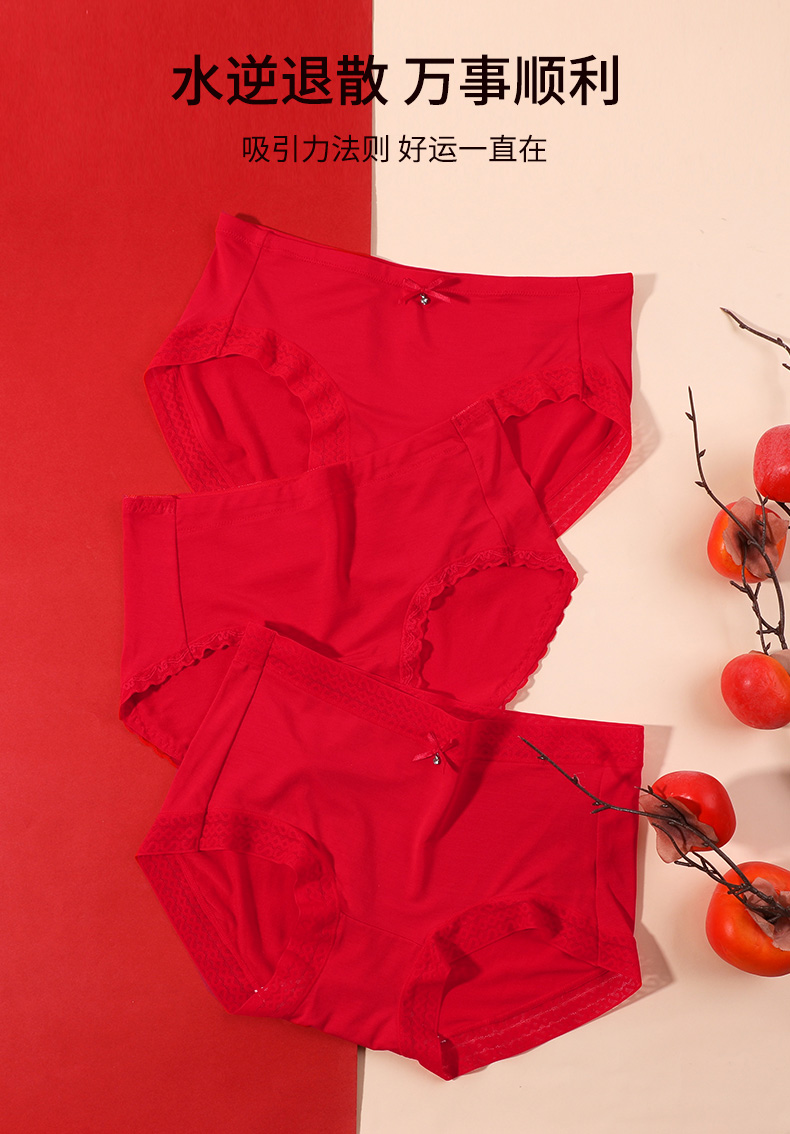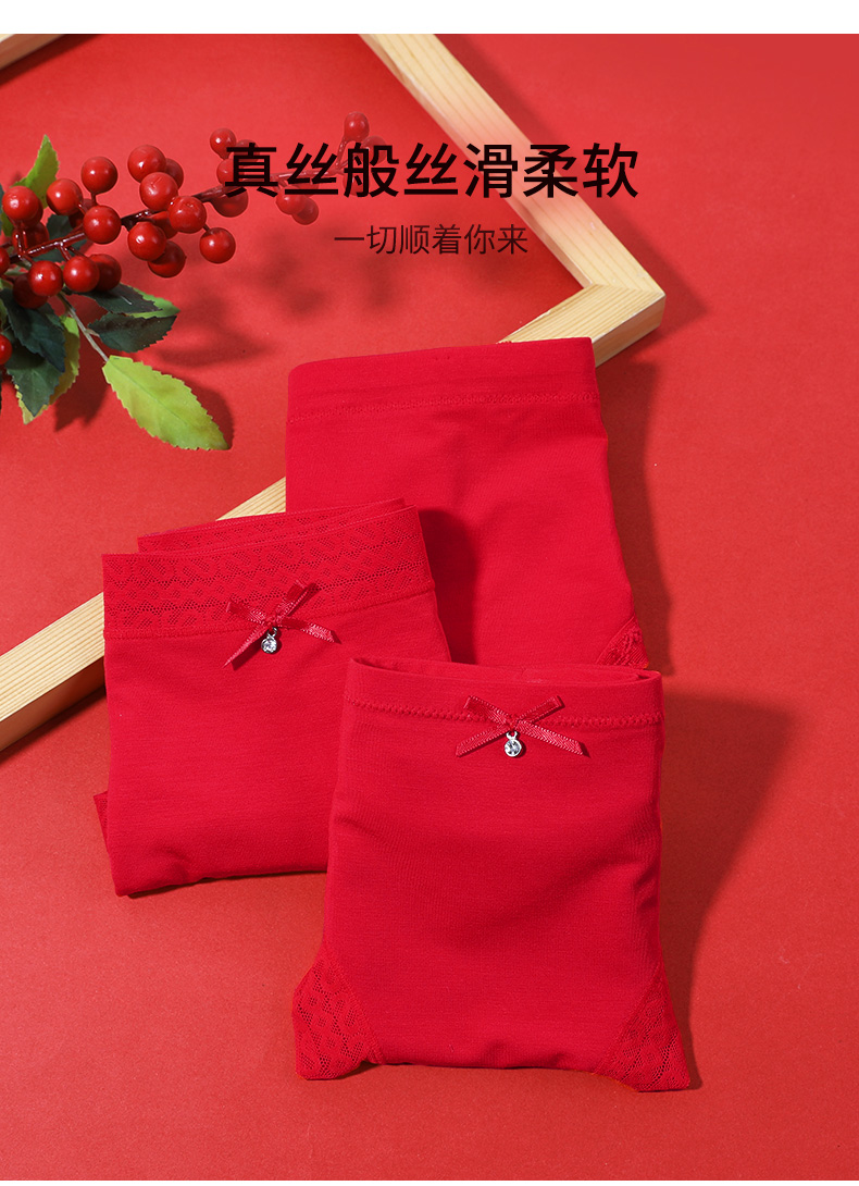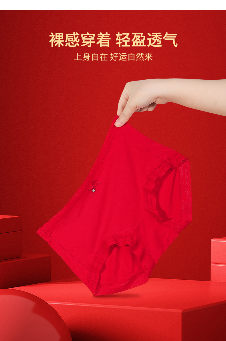 【3条装】熳洁儿内裤女本命年中低腰包臀红品三角裤透气舒适内裤23752101