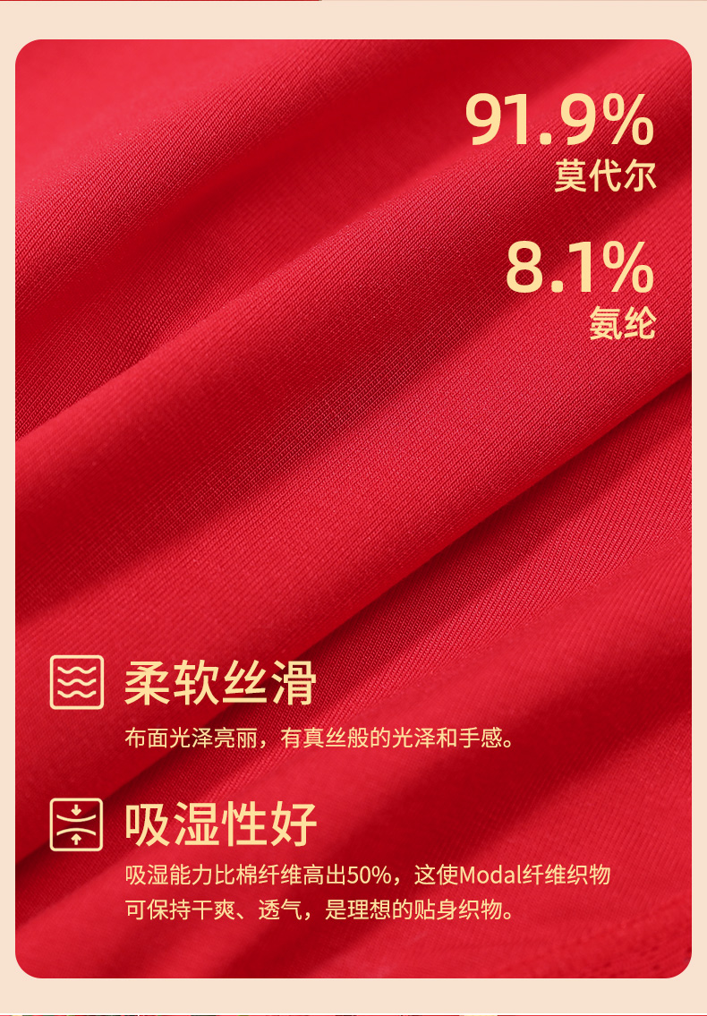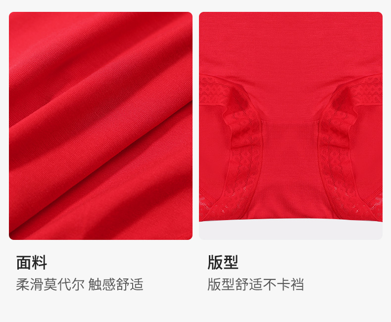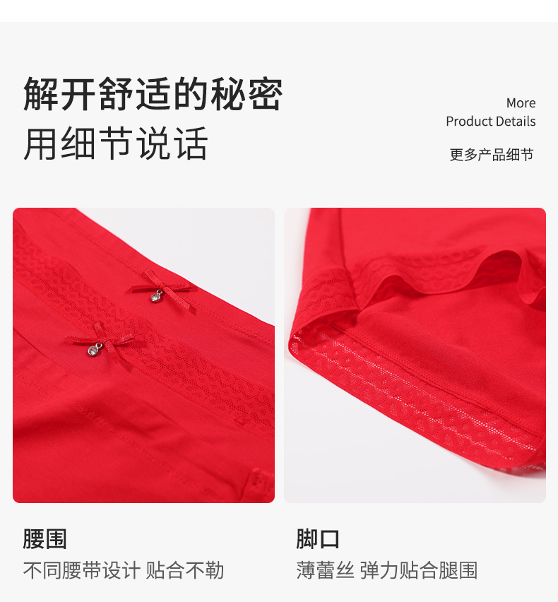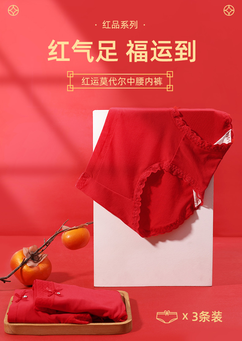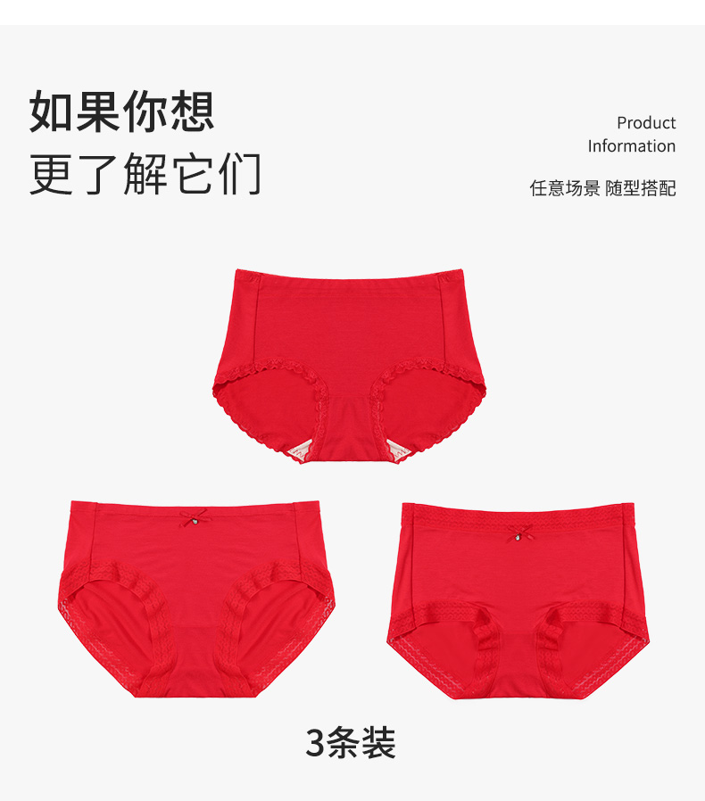 【3条装】熳洁儿内裤女本命年中低腰包臀红品三角裤透气舒适内裤23752101