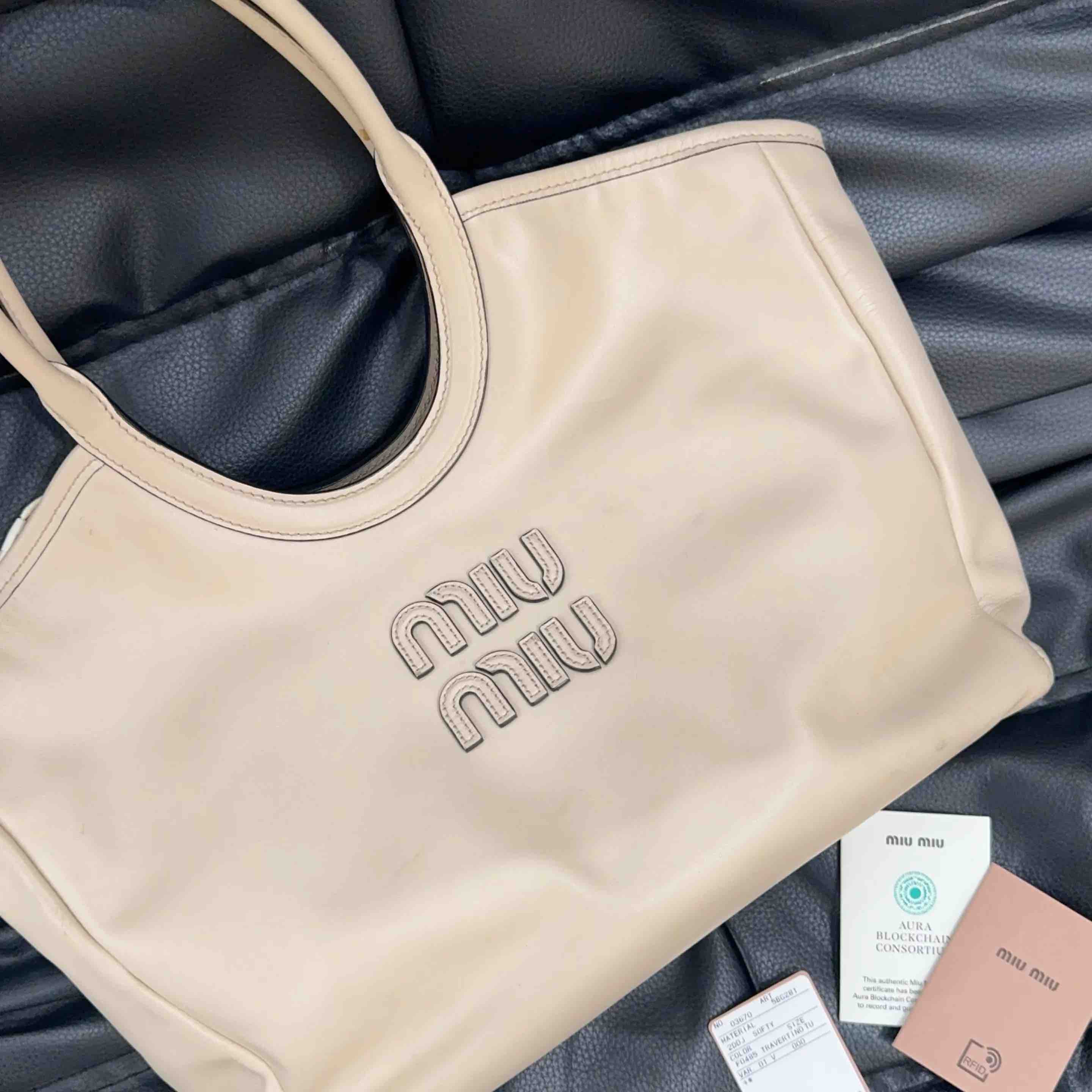 【商品详情】正品二手 缪缪 Ivy 奶白色 牛皮 单肩包🩷 95新 28×24。边角和内里正常使用感。清纯少女风 温柔气质百搭