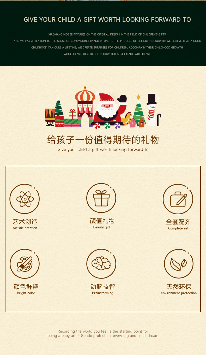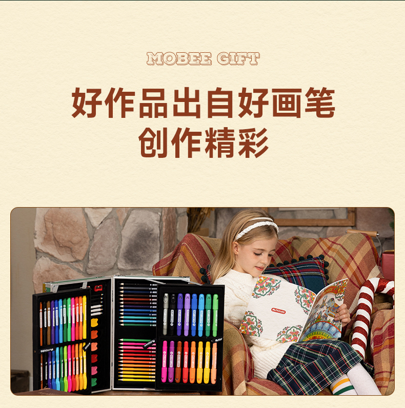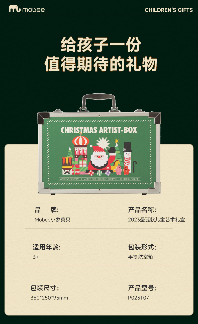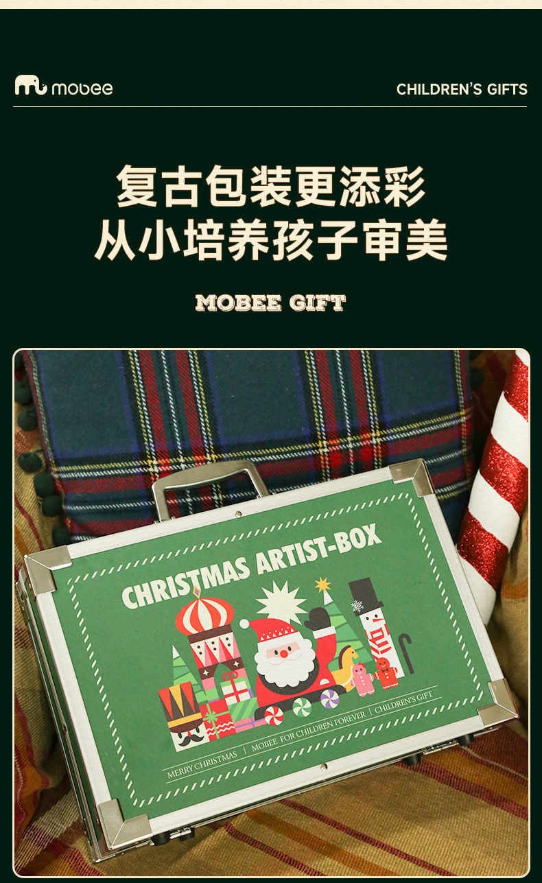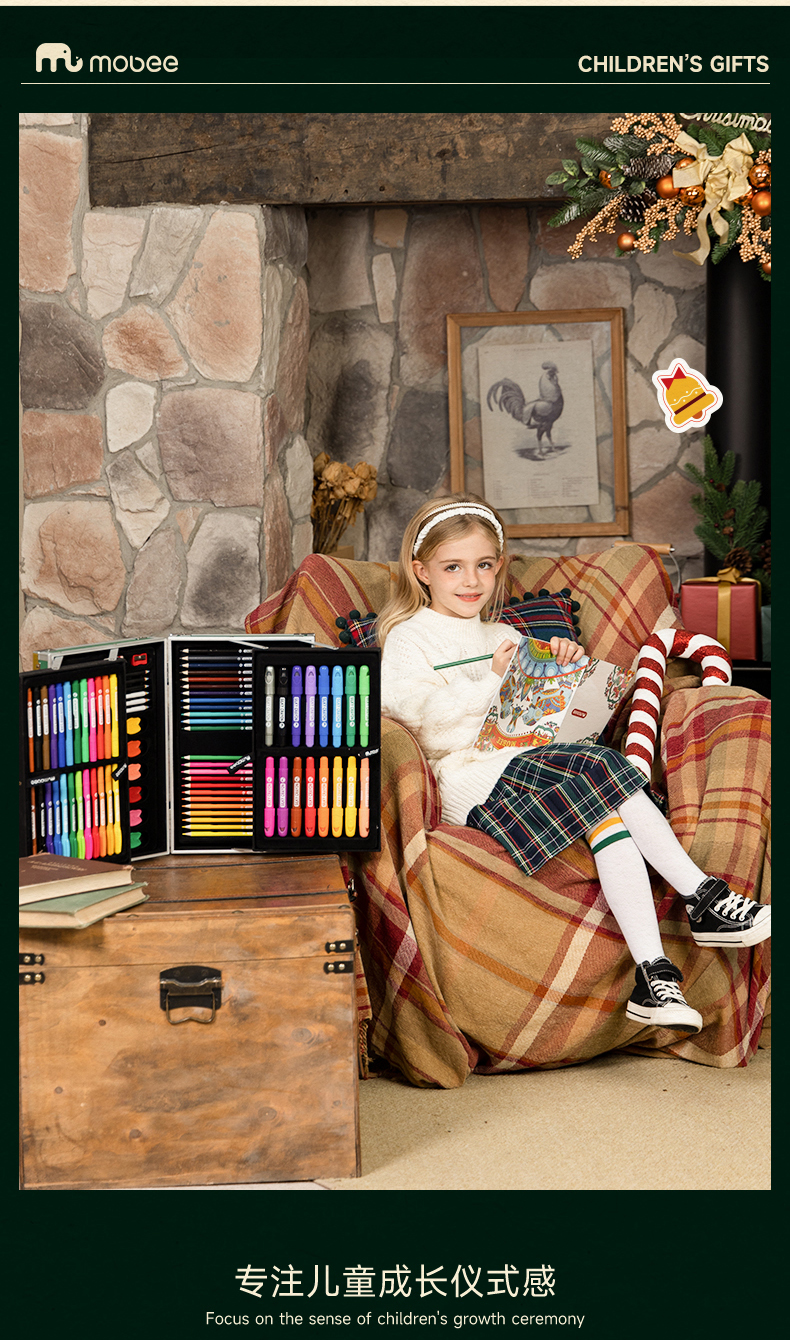 Mobee圣诞款艺术礼盒 2023圣诞款儿童艺术礼盒 可水洗水彩笔套装