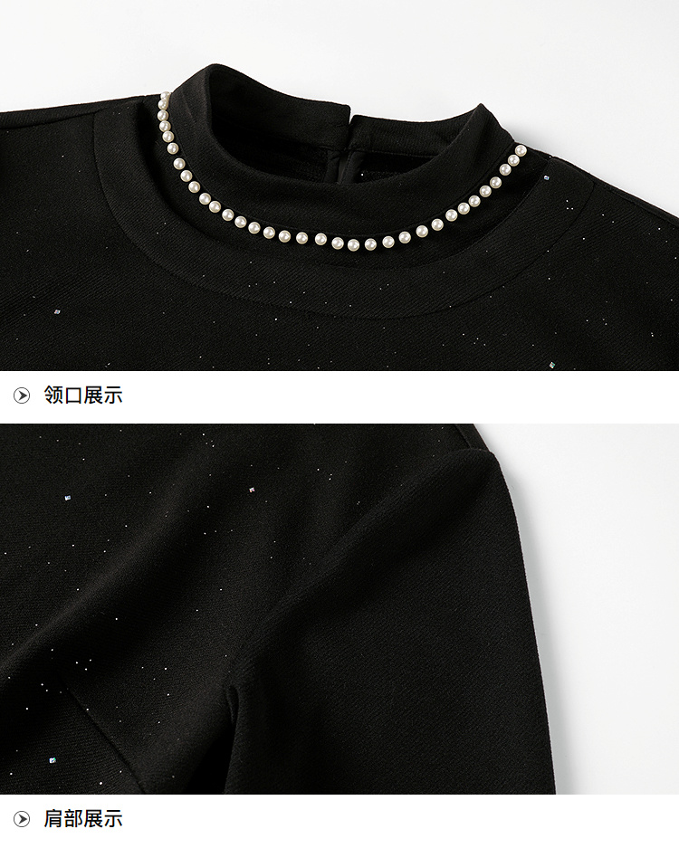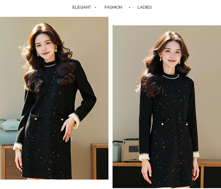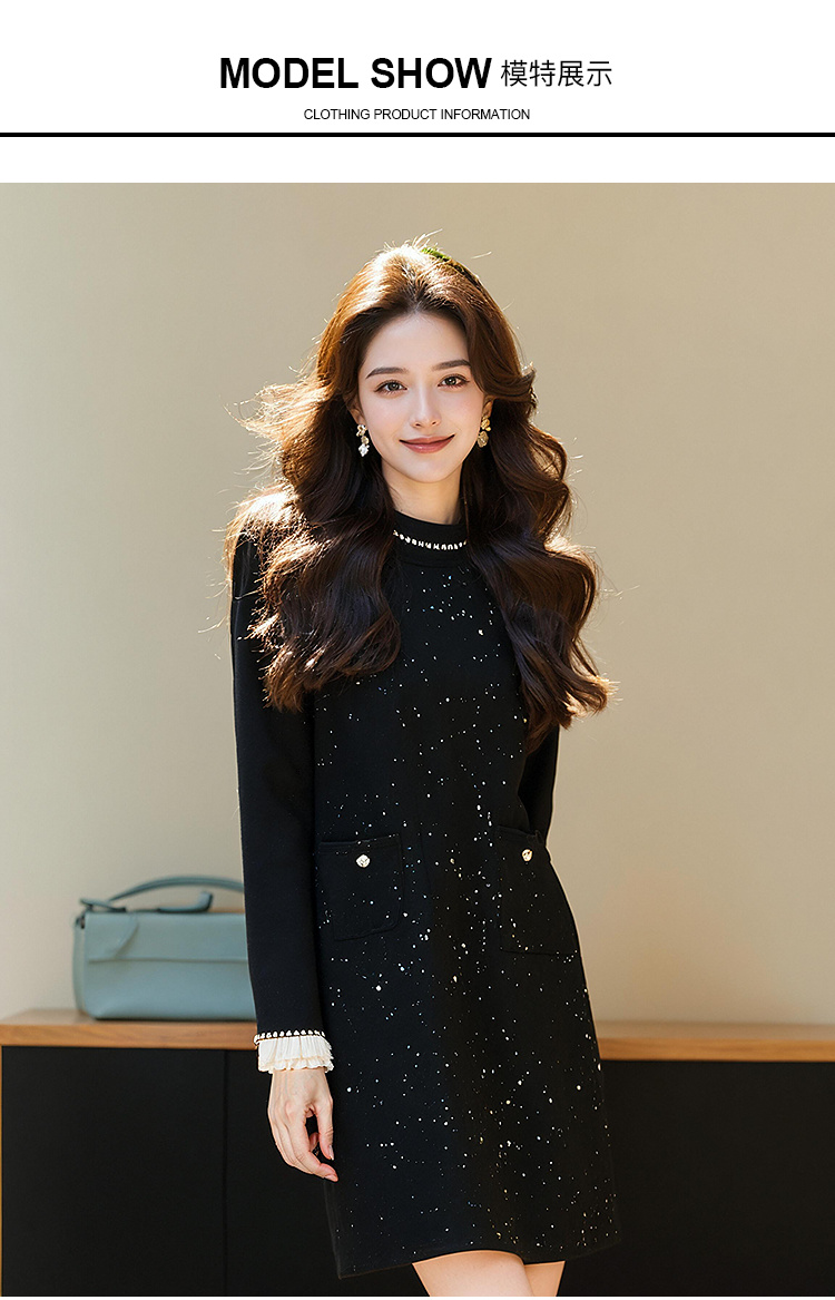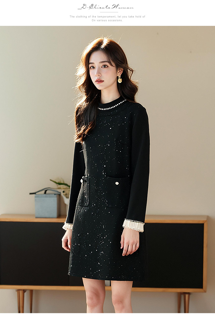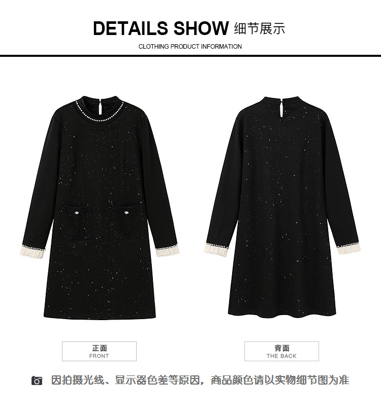 奢姿2025秋装胖妹妹大码女装钉珠连衣裙加绒圆领套头气质打底裙女5244803438