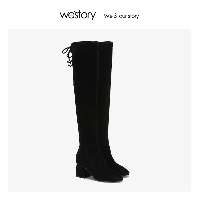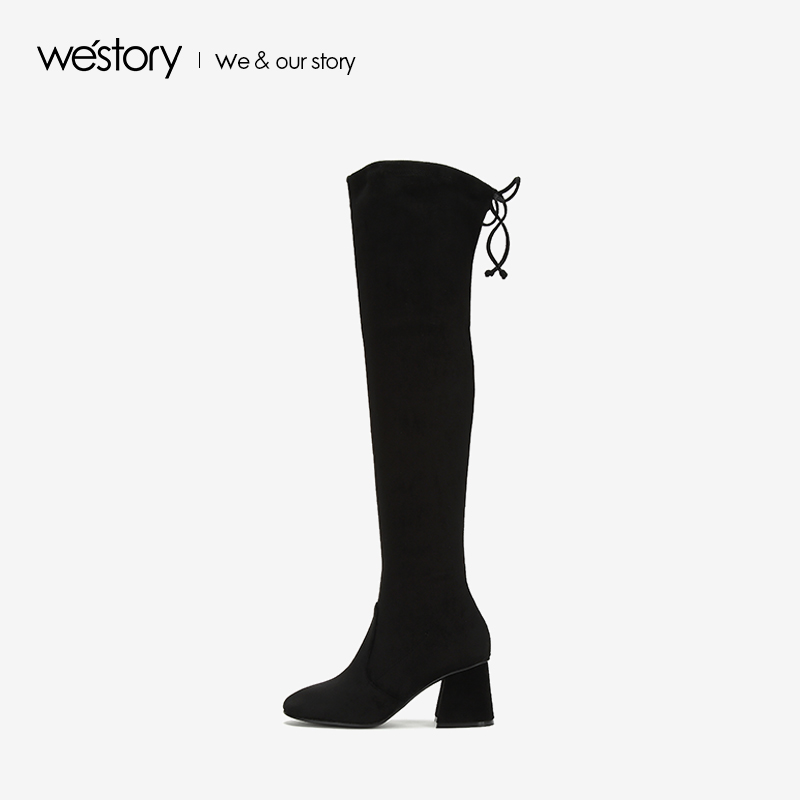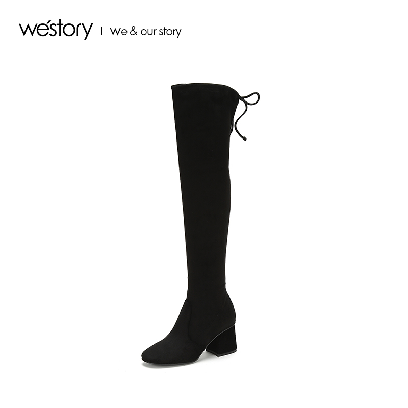 westory商场同款冬季长筒靴弹力布高跟圆头瘦瘦靴女W284I81071
