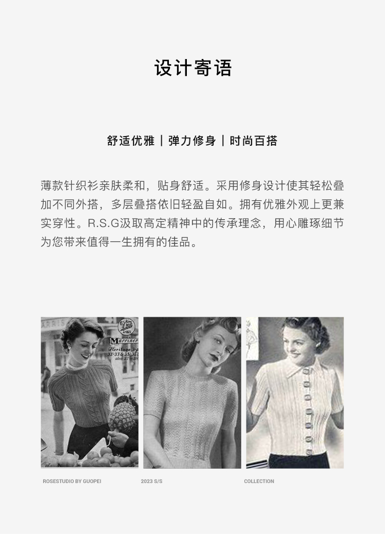RSG郭培成衣品牌圆领修身型套头短袖通勤女款针织衫薄款上衣
