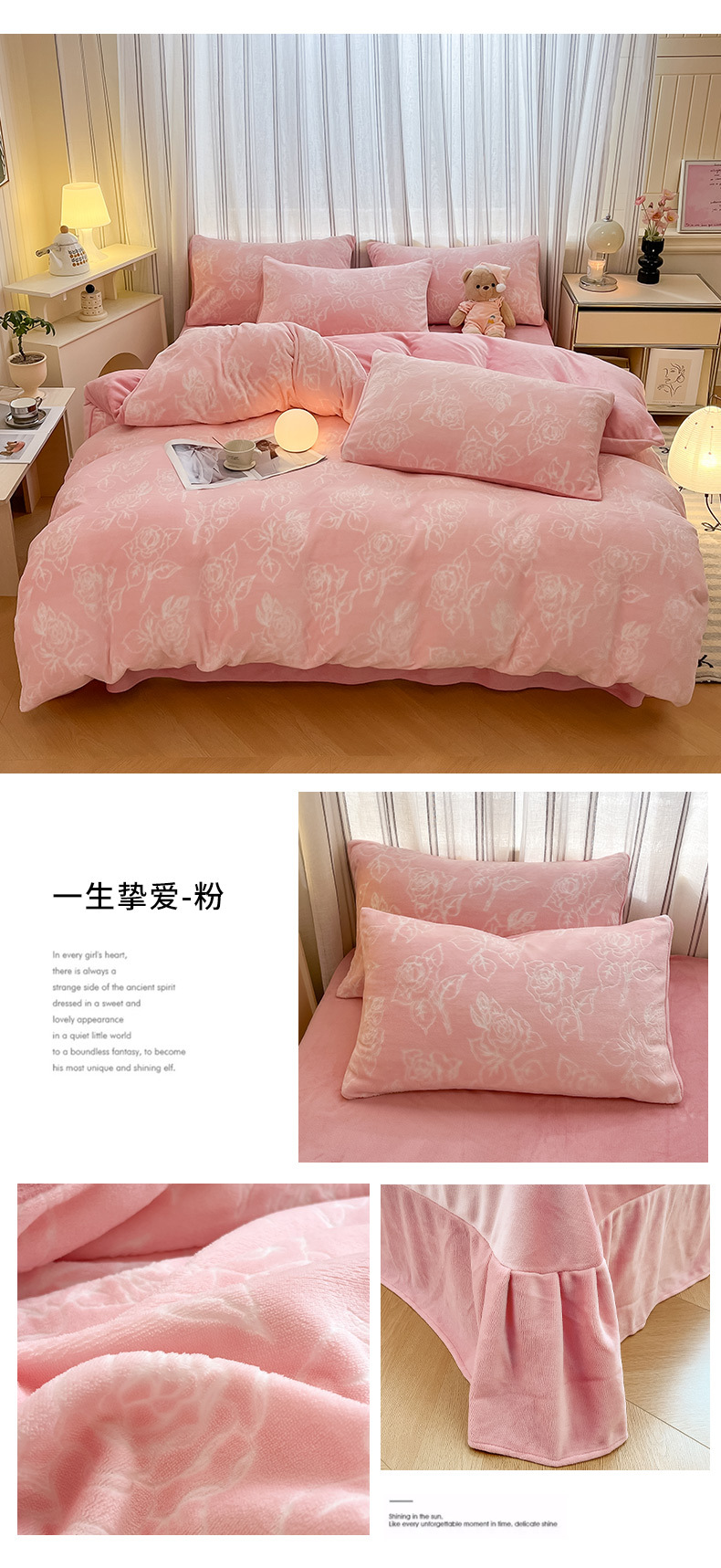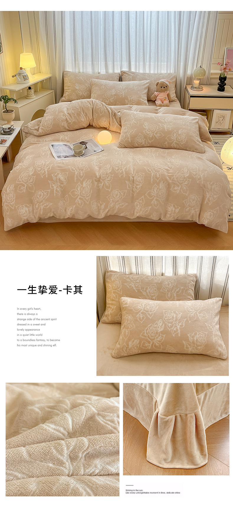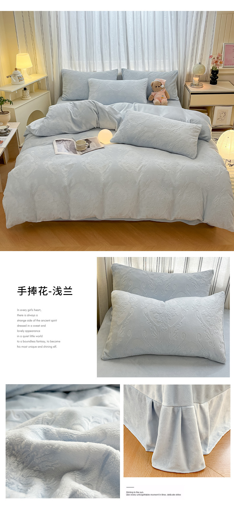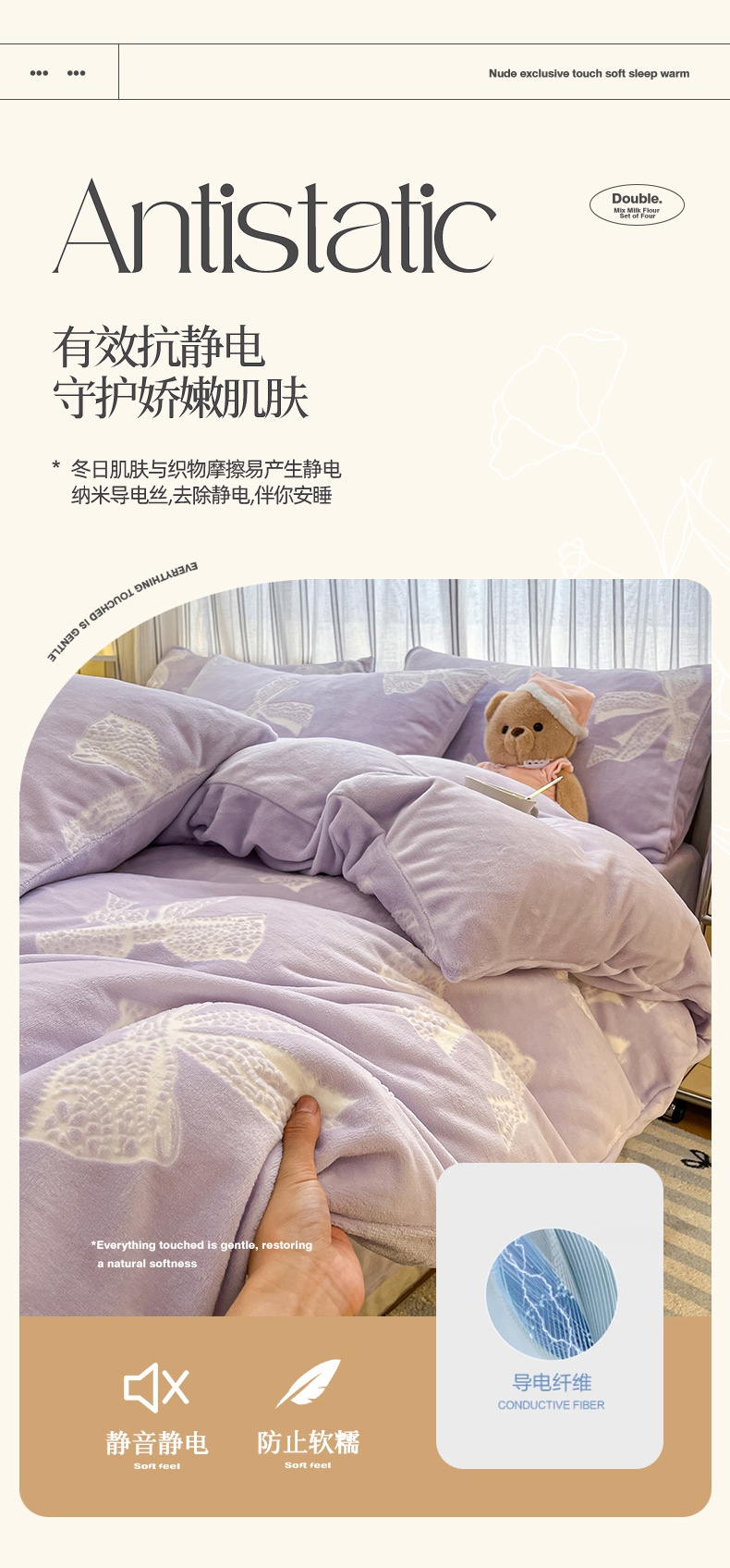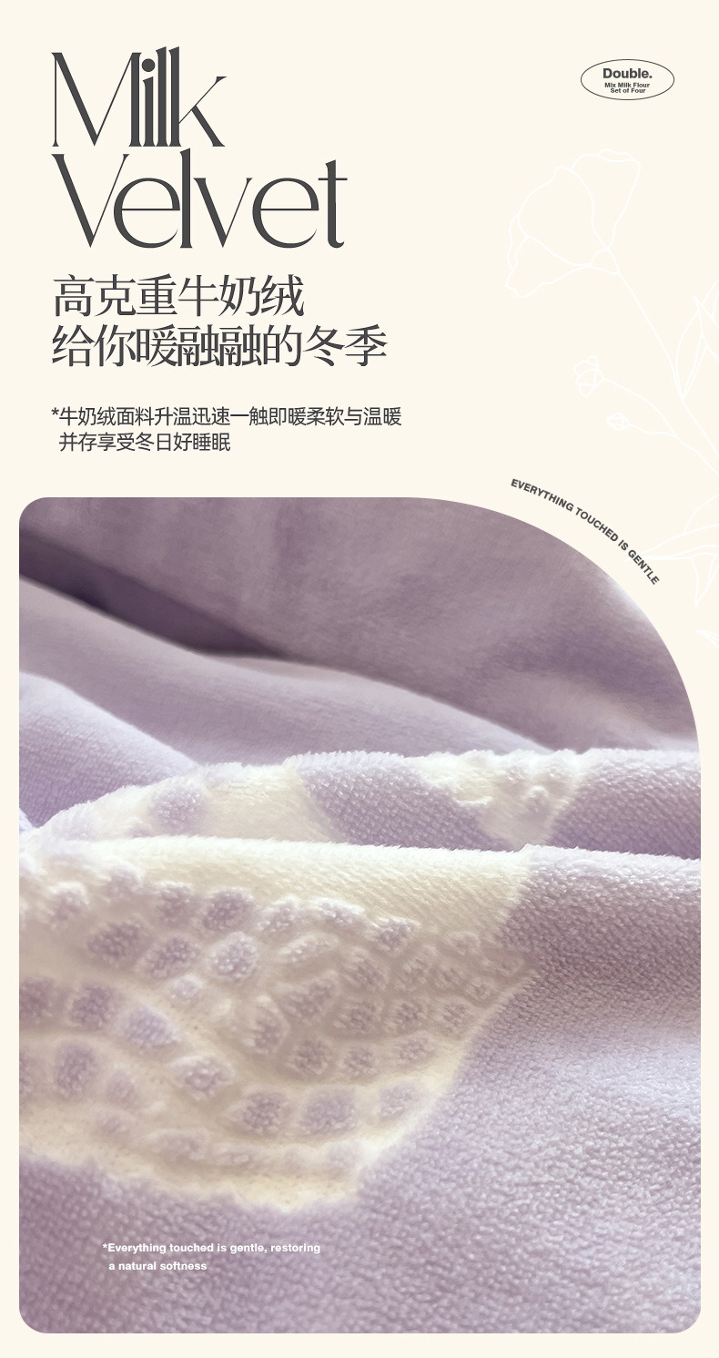 冬季【A类母婴级牛奶绒四件套】保暖加厚雕花加绒双面绒 防静电四件套