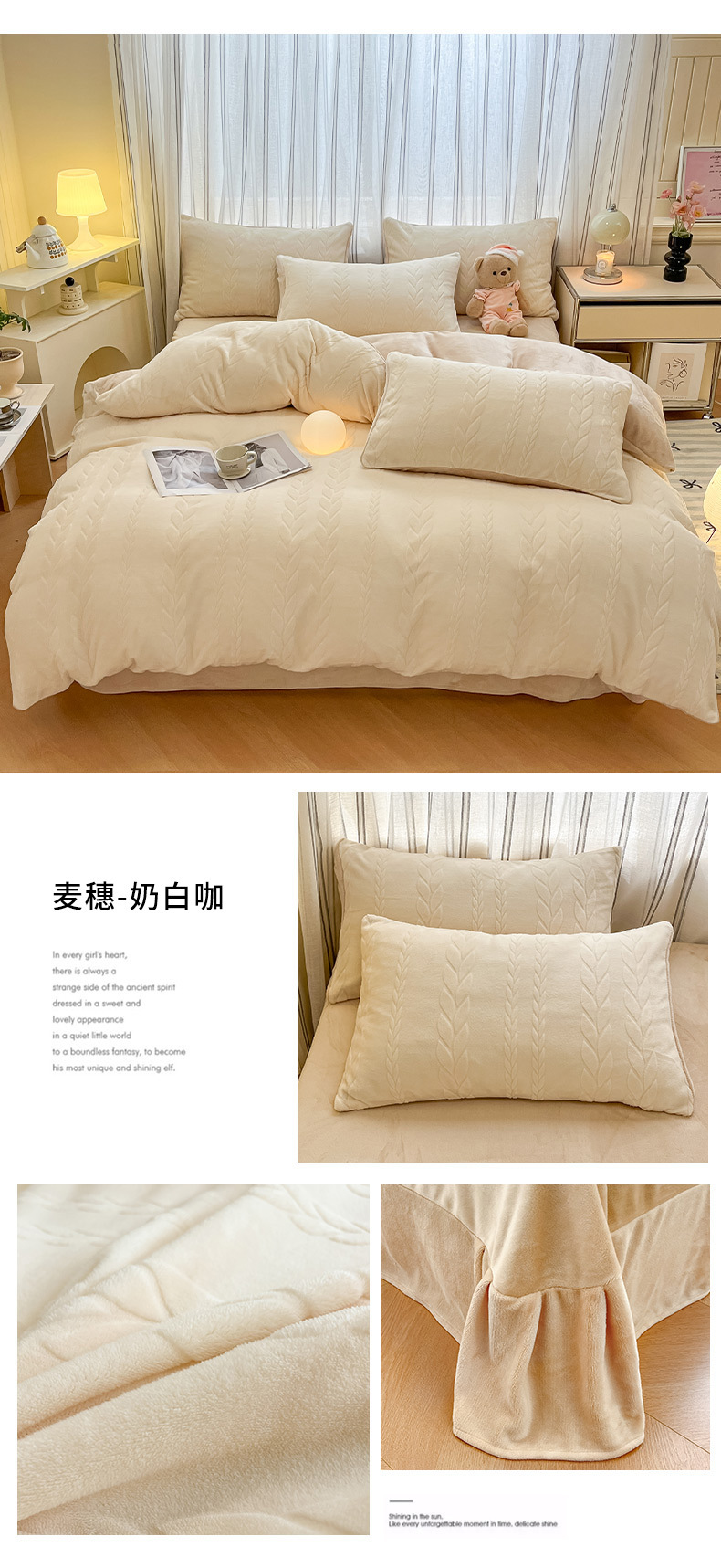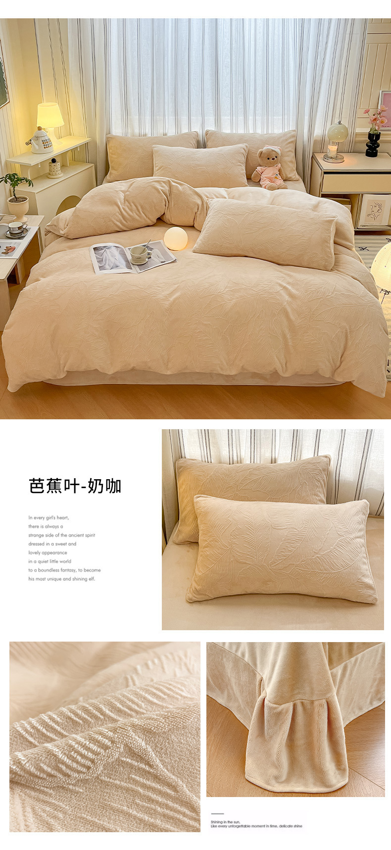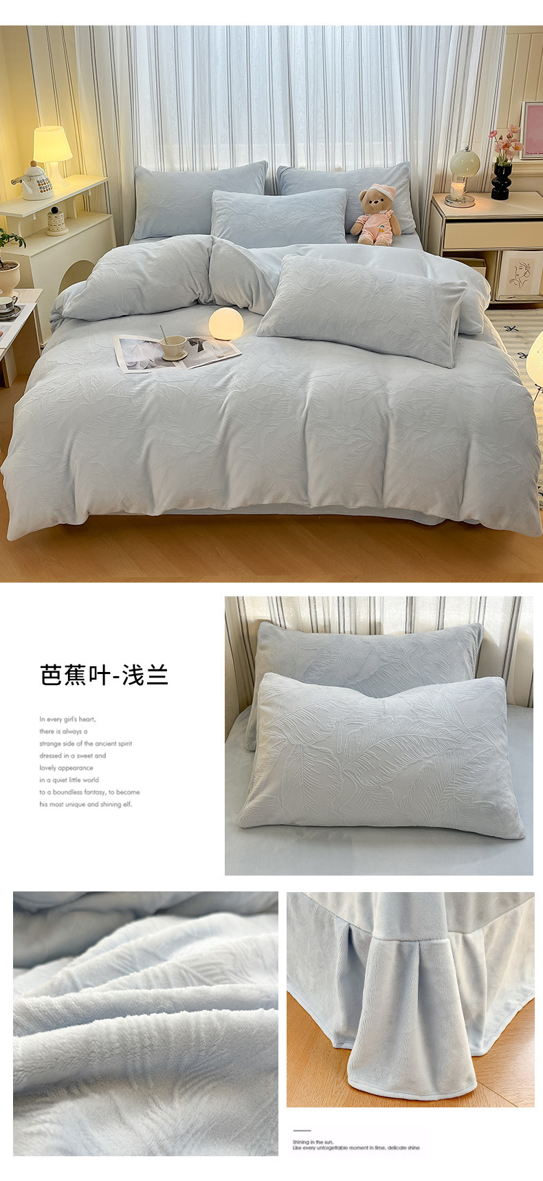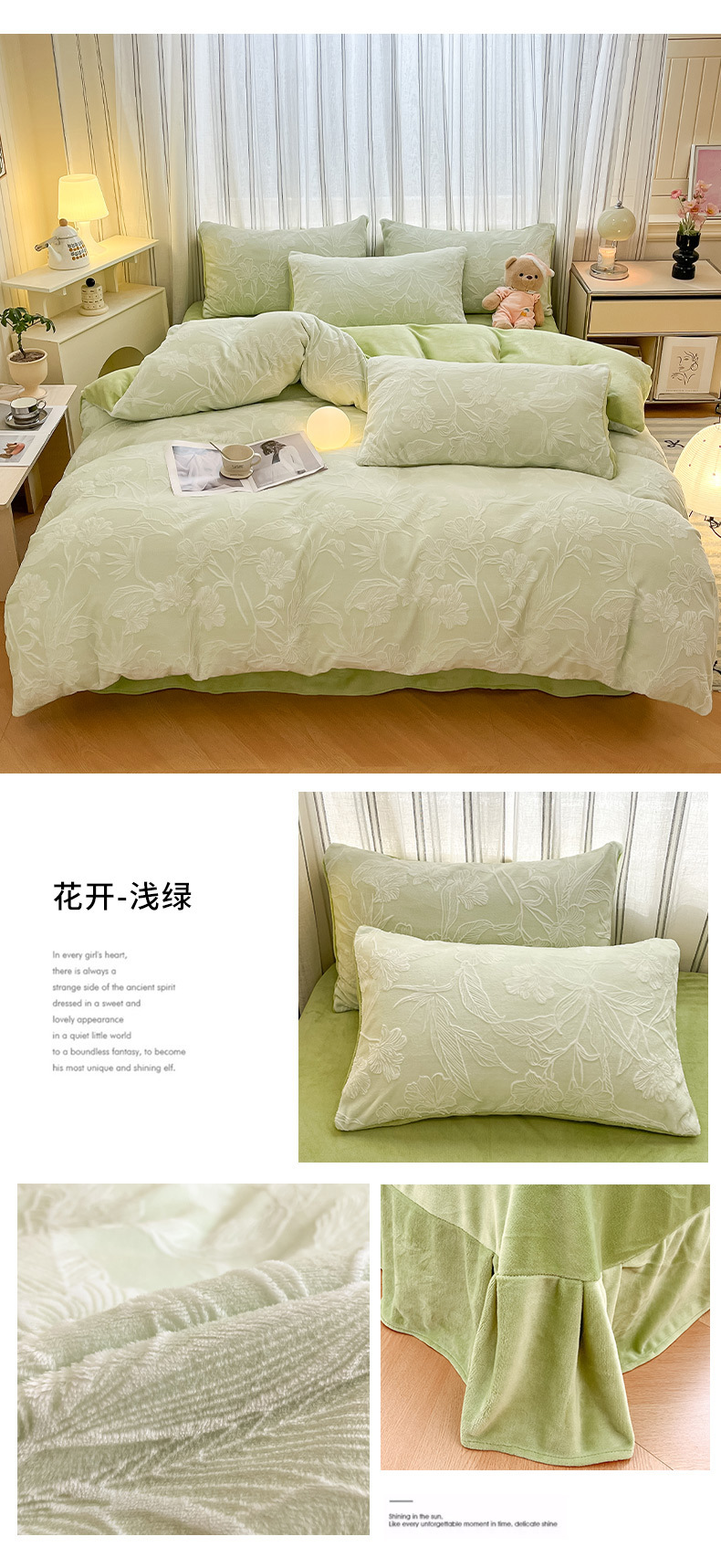 冬季【A类母婴级牛奶绒四件套】保暖加厚雕花加绒双面绒 防静电四件套