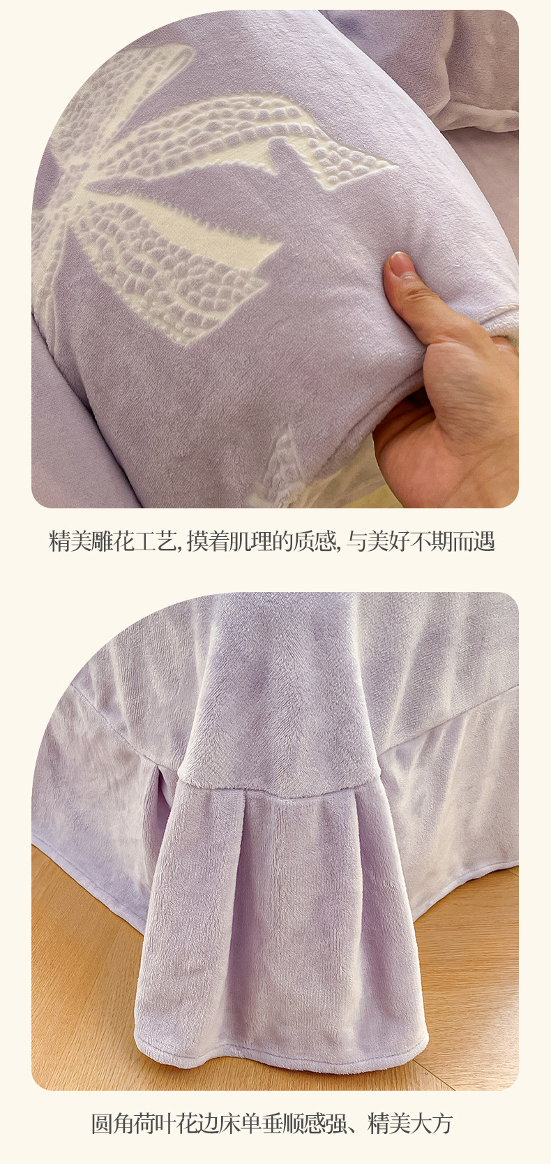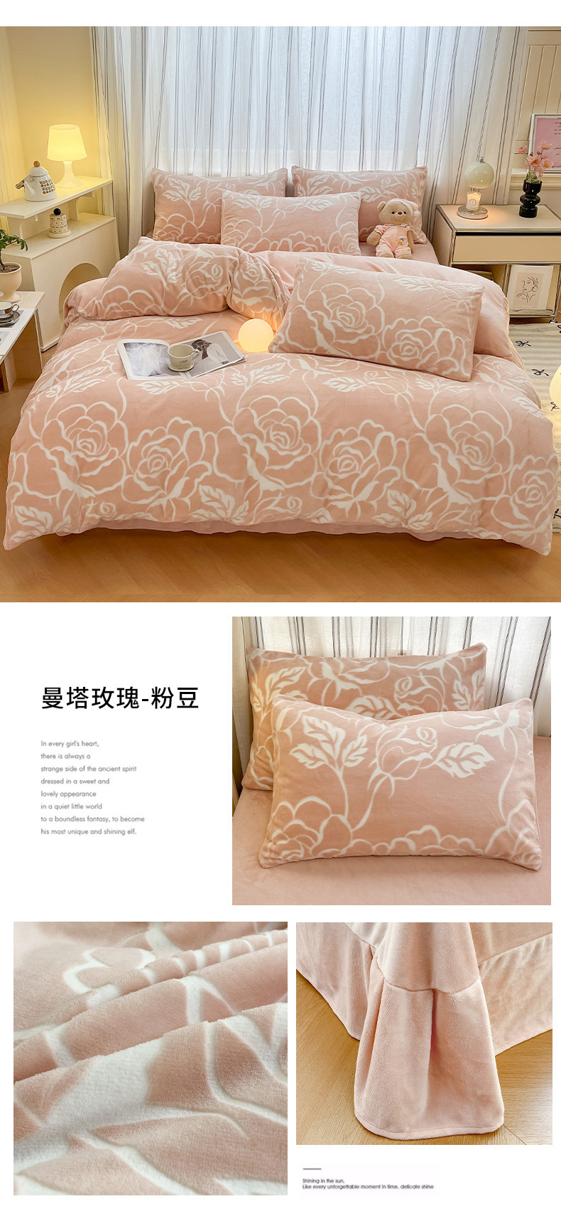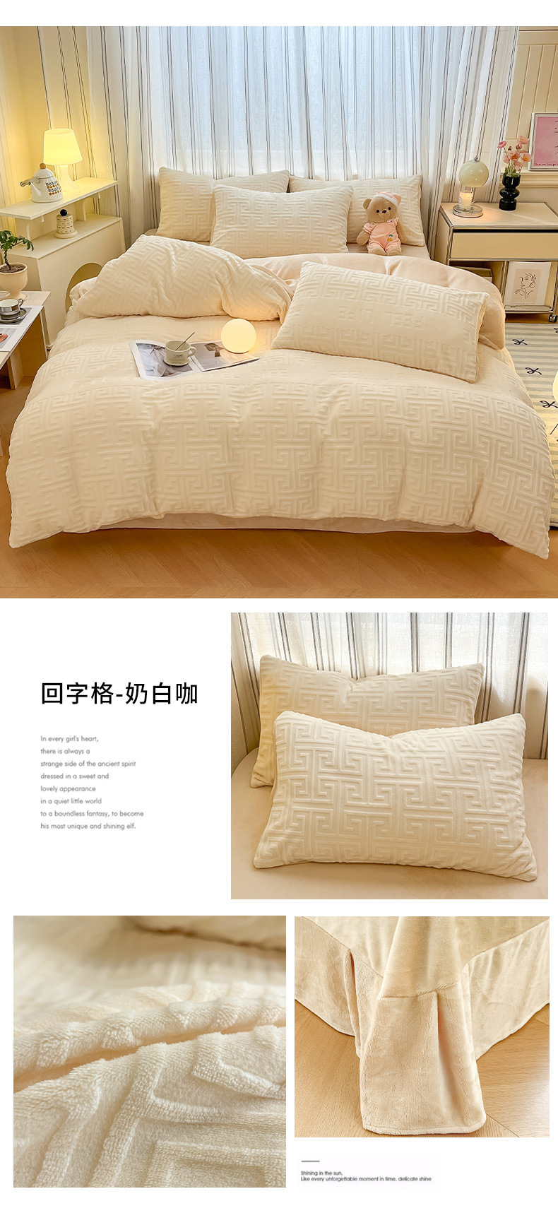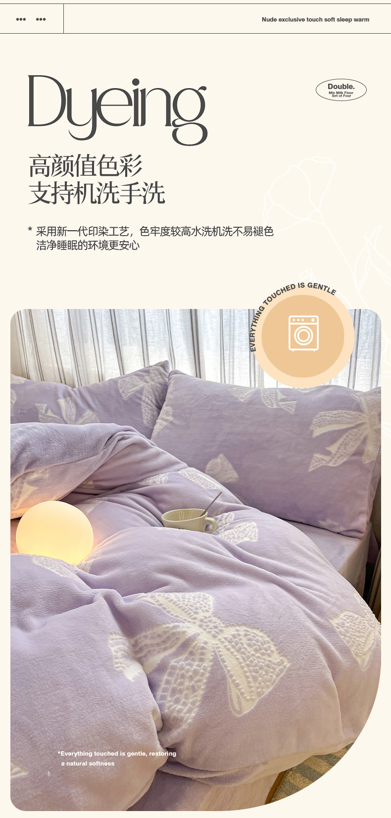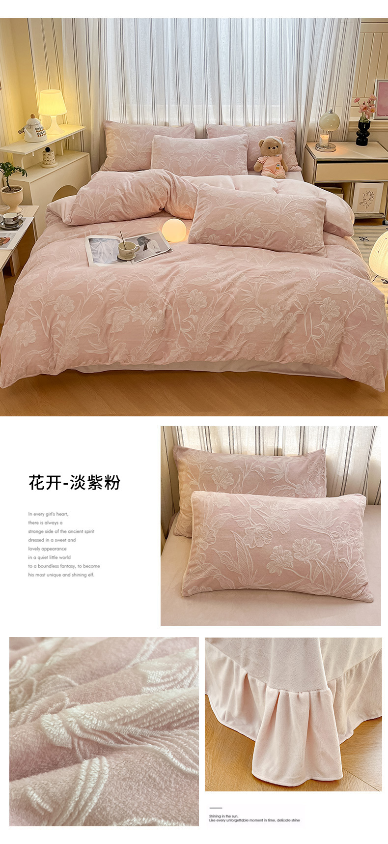 冬季【A类母婴级牛奶绒四件套】保暖加厚雕花加绒双面绒 防静电四件套