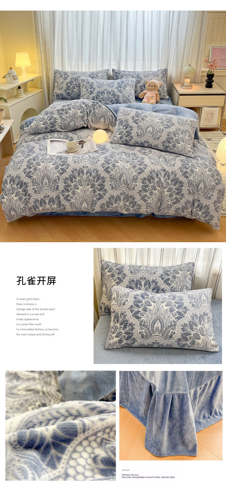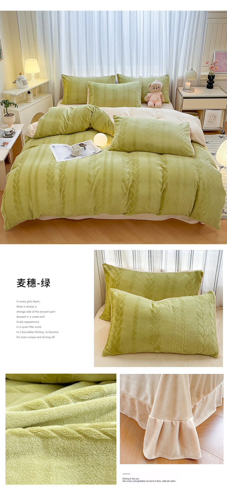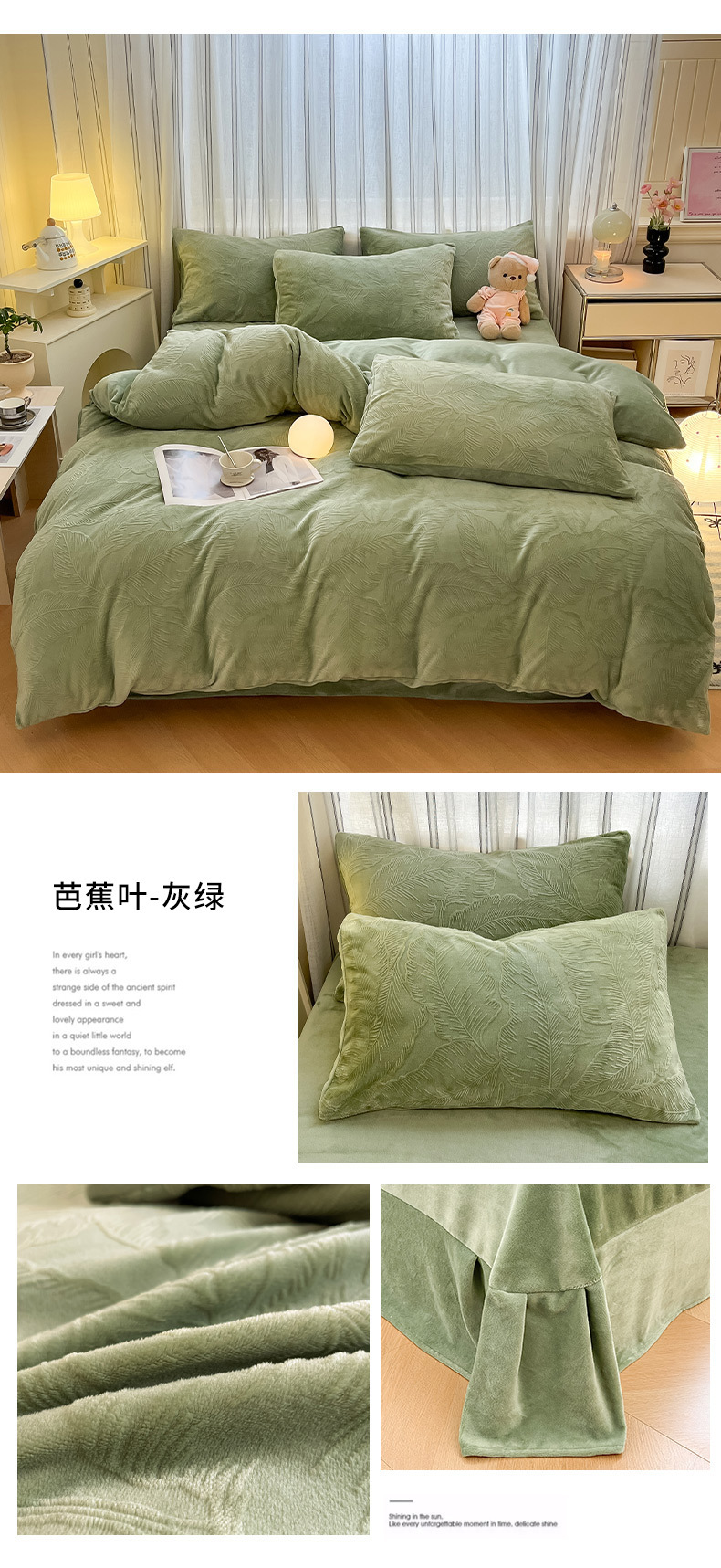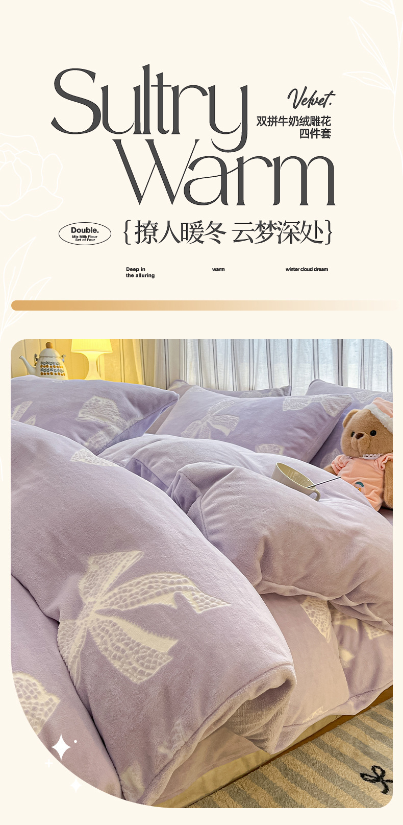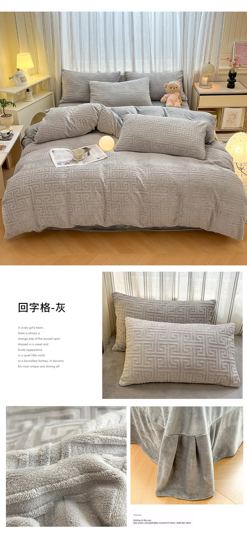 冬季【A类母婴级牛奶绒四件套】保暖加厚雕花加绒双面绒 防静电四件套