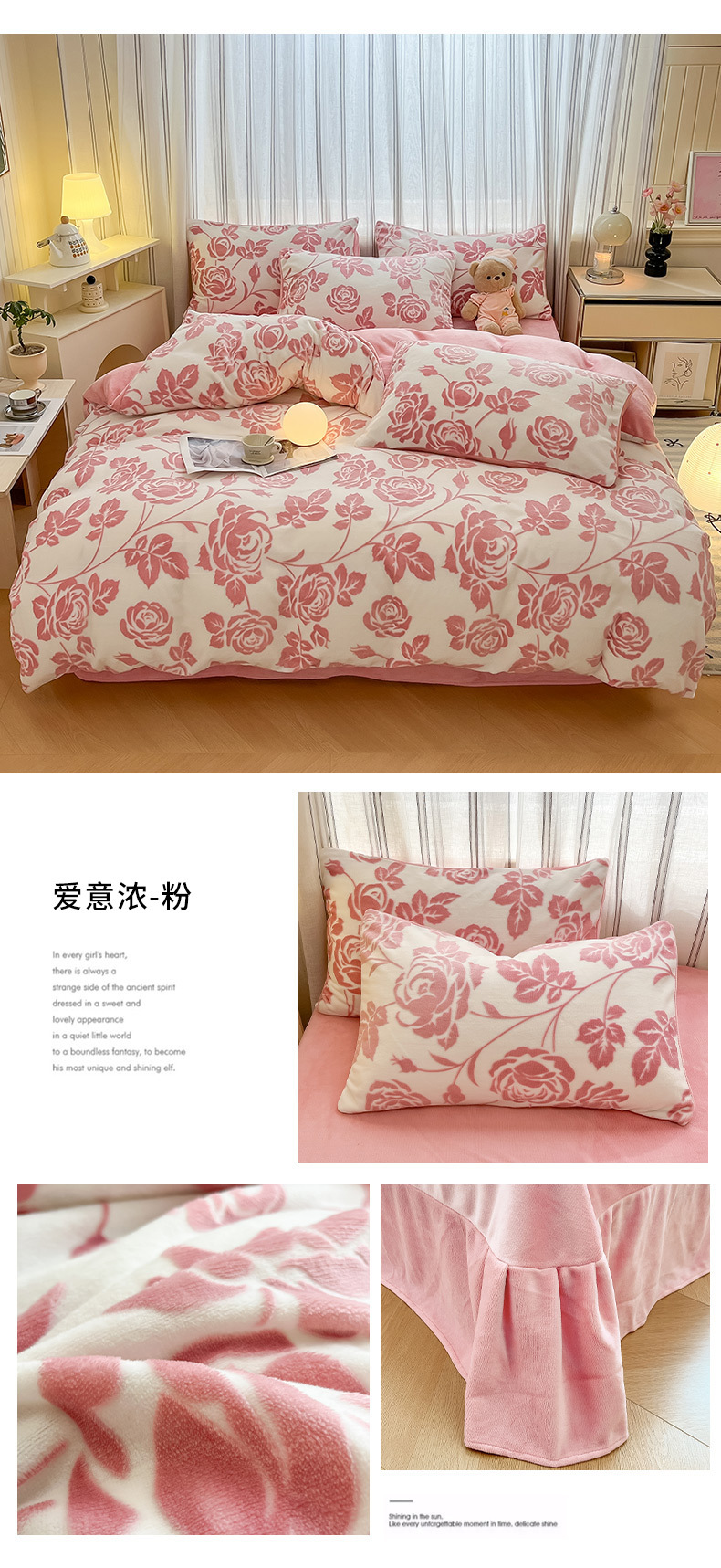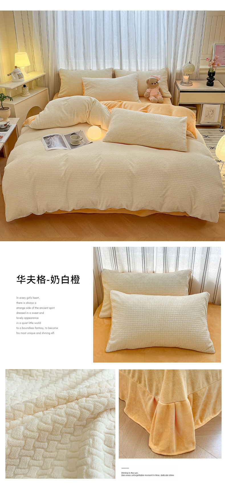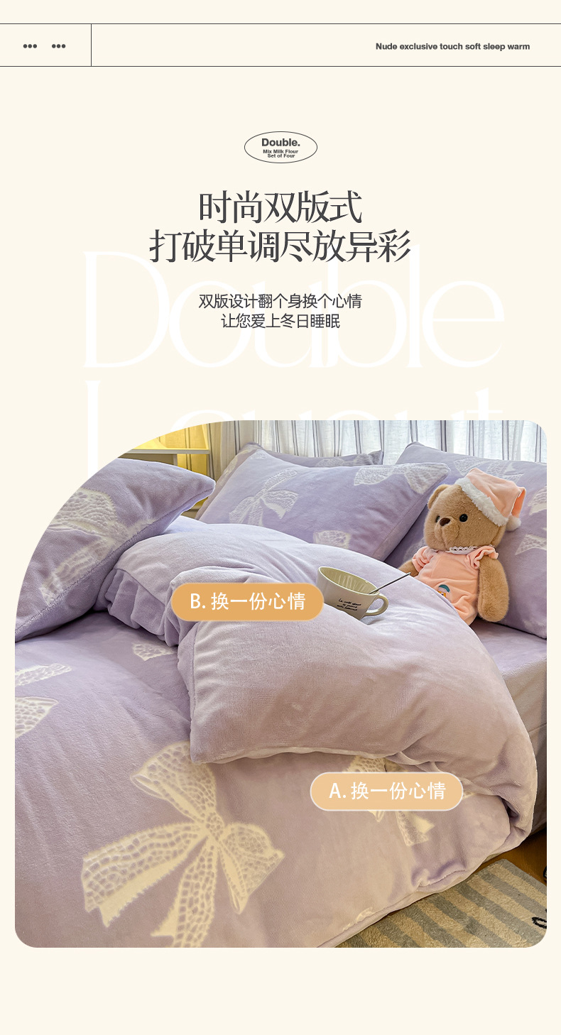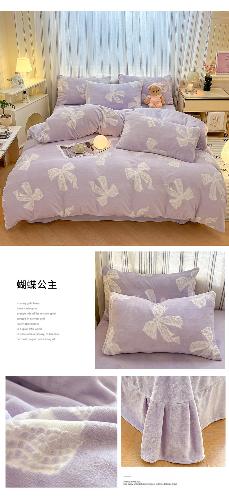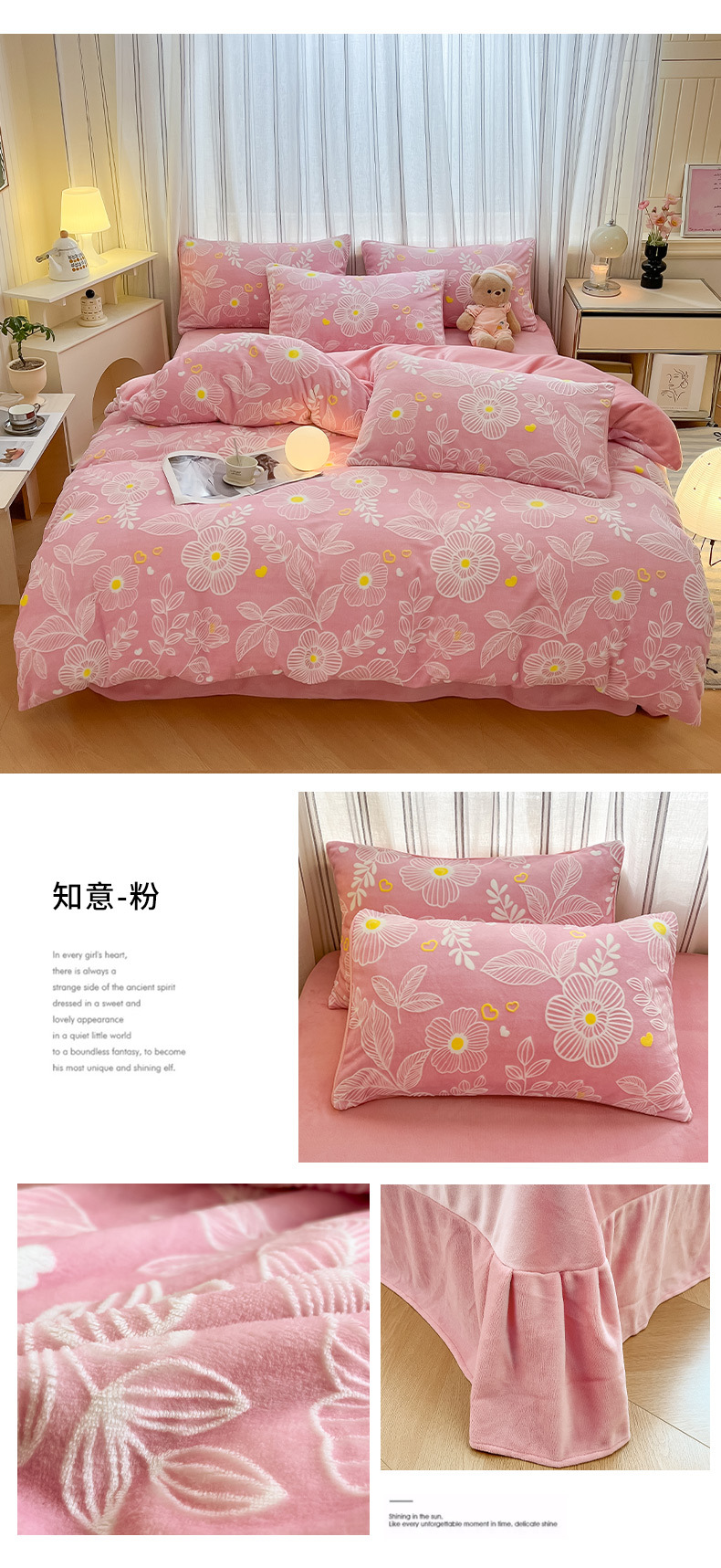冬季【A类母婴级牛奶绒四件套】保暖加厚雕花加绒双面绒 防静电四件套