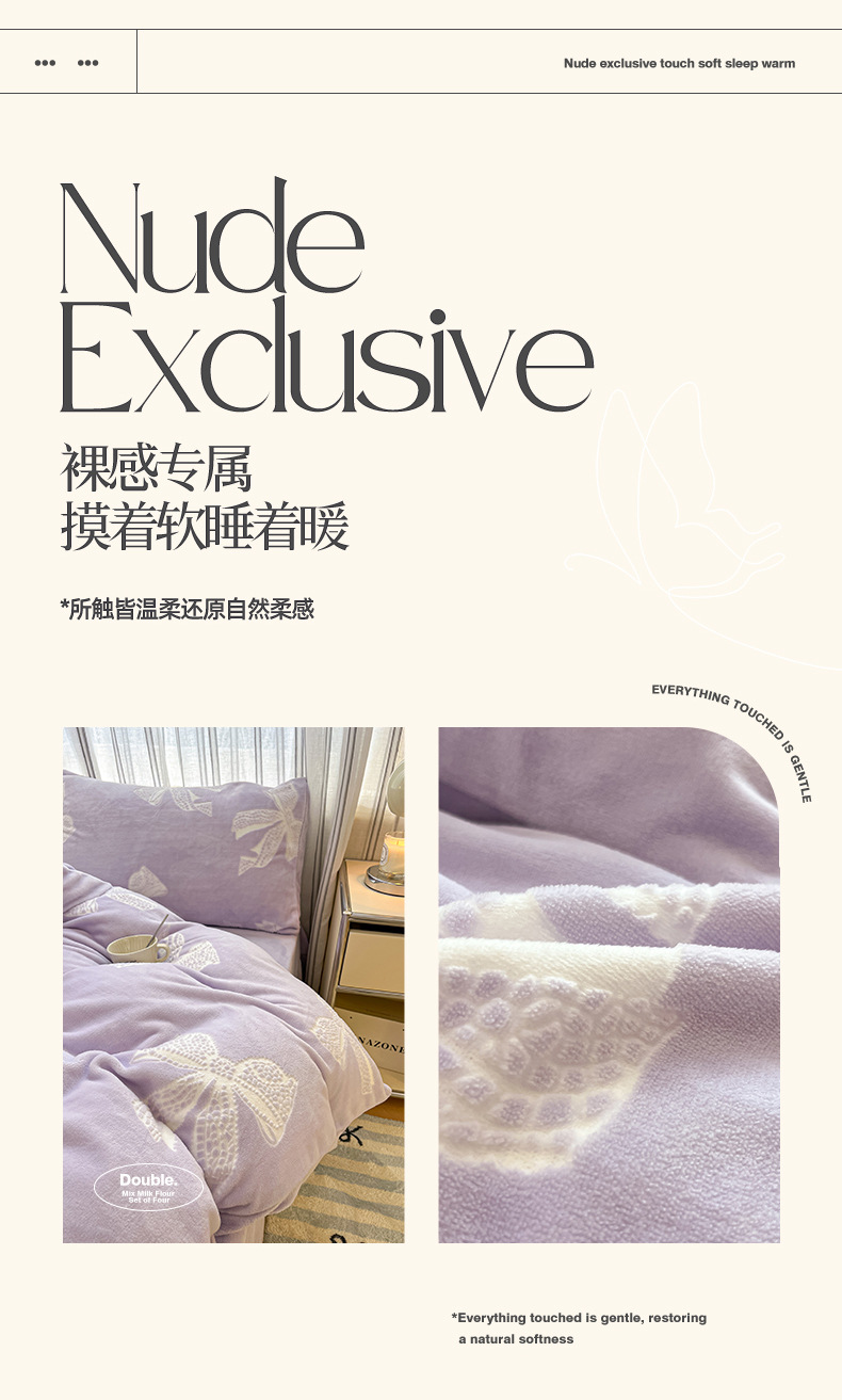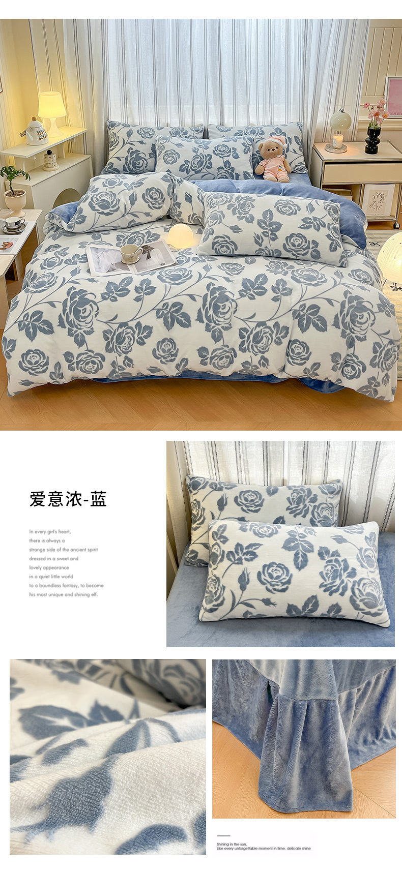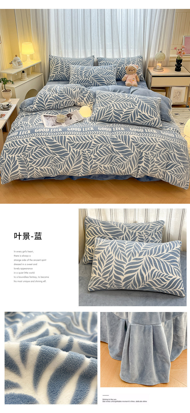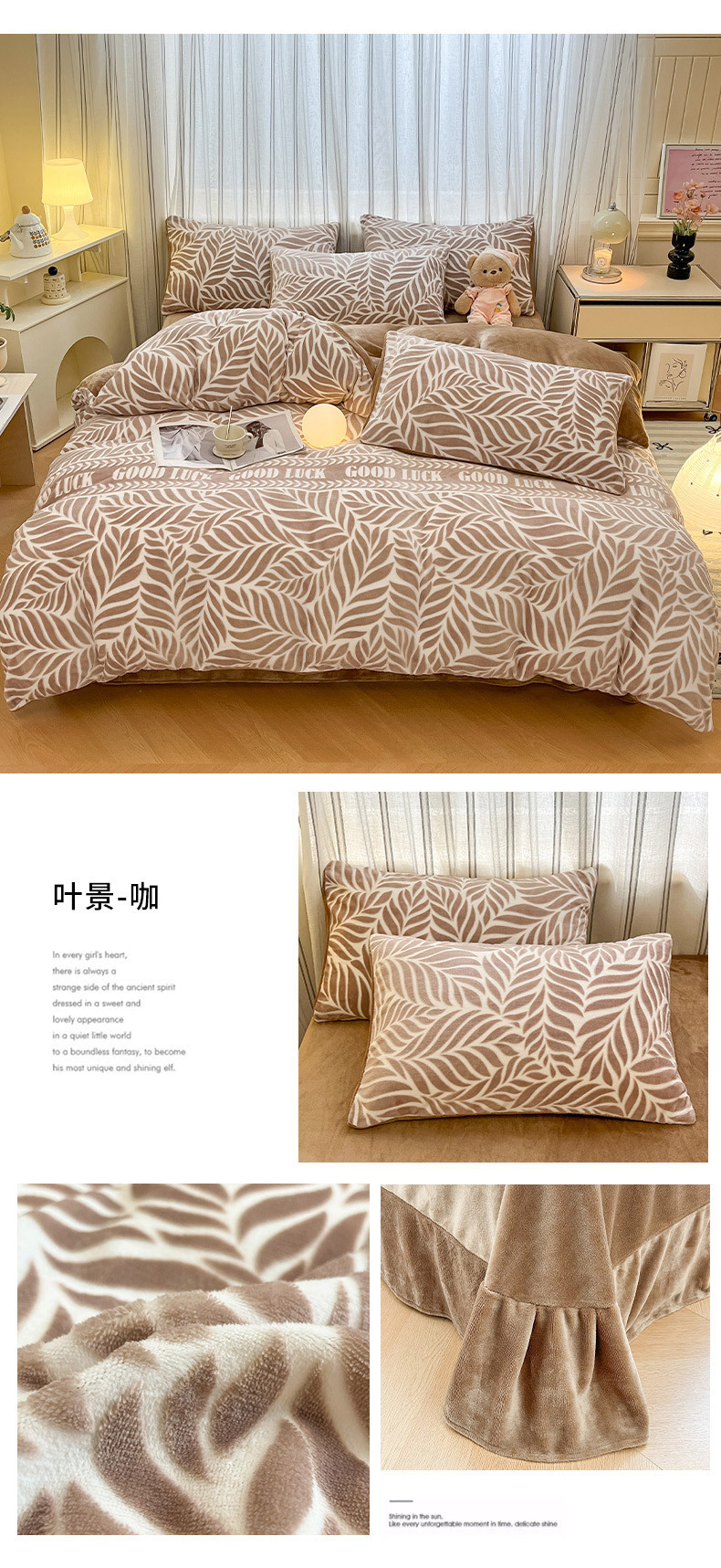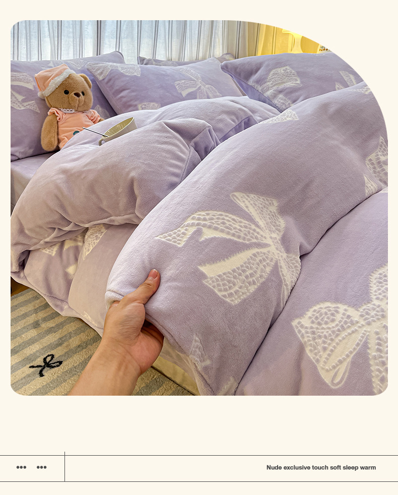 冬季【A类母婴级牛奶绒四件套】保暖加厚雕花加绒双面绒 防静电四件套