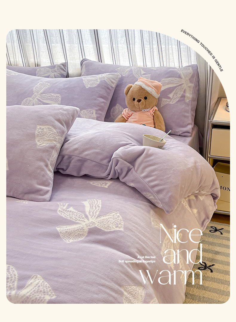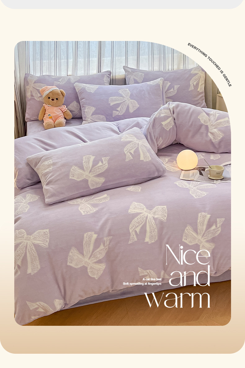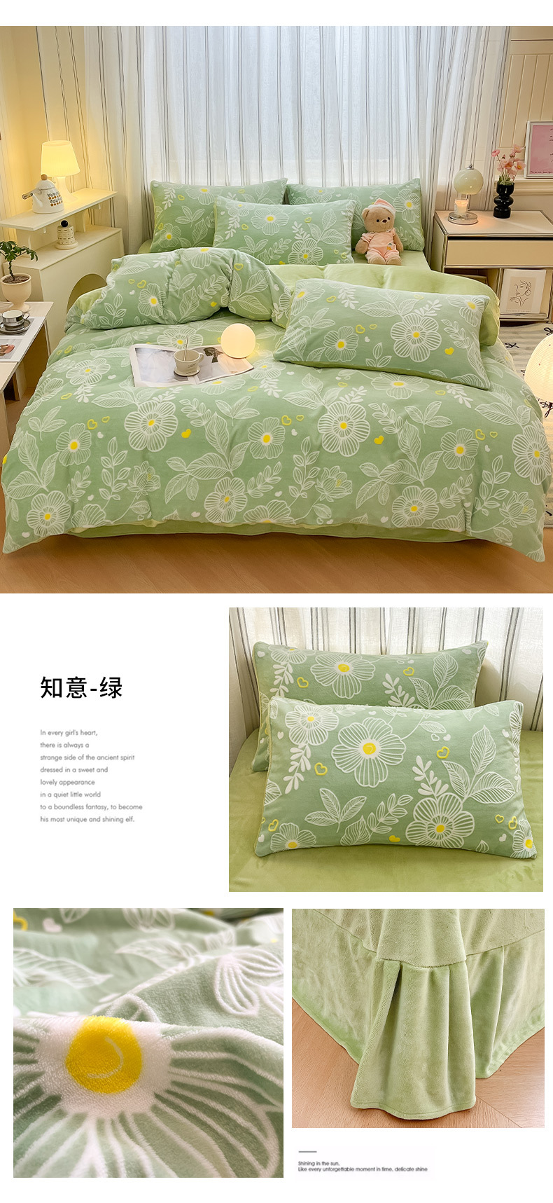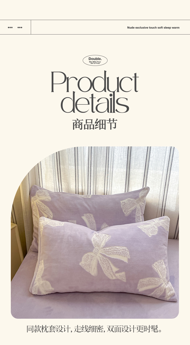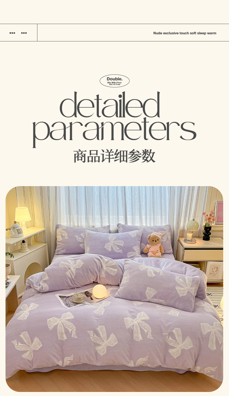 冬季【A类母婴级牛奶绒四件套】保暖加厚雕花加绒双面绒 防静电四件套