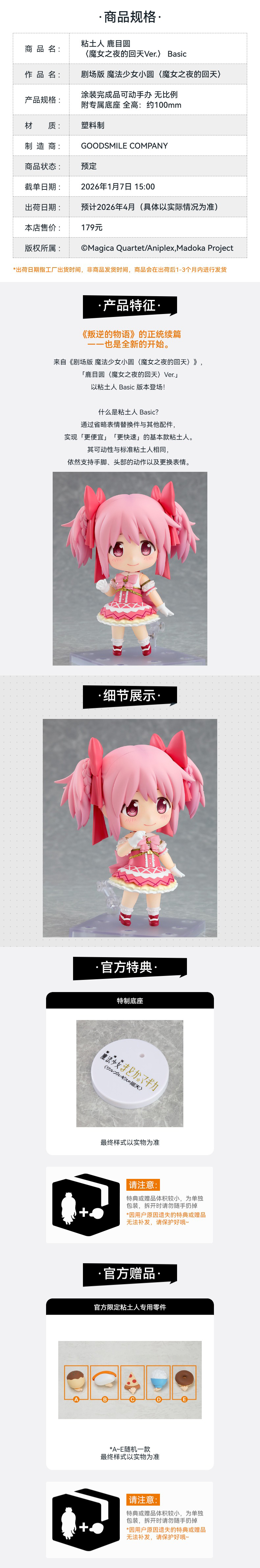 【GSC补款】粘土人 鹿目圆 〈魔女之夜的回天Ver.〉 Basic 剧场版 魔法少女小圆〈魔女之夜的回天〉附官方限定特典