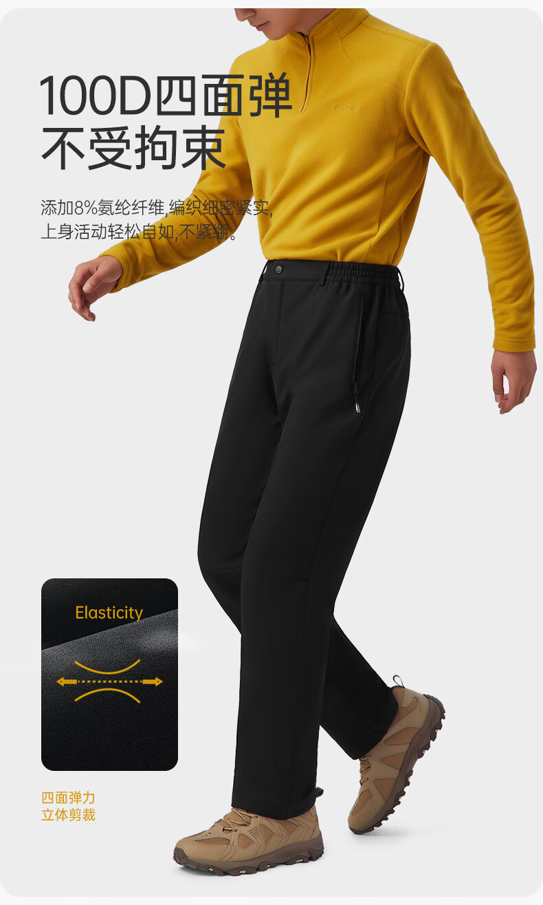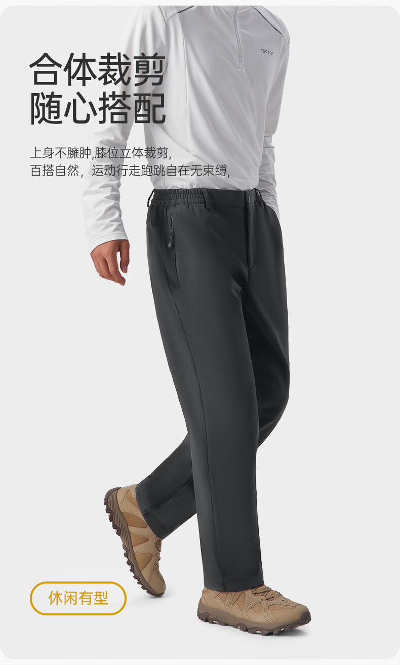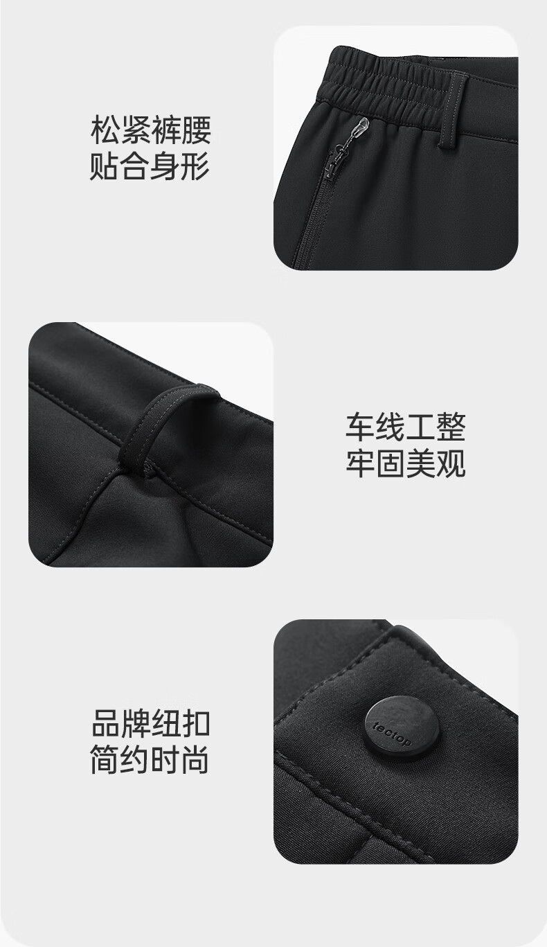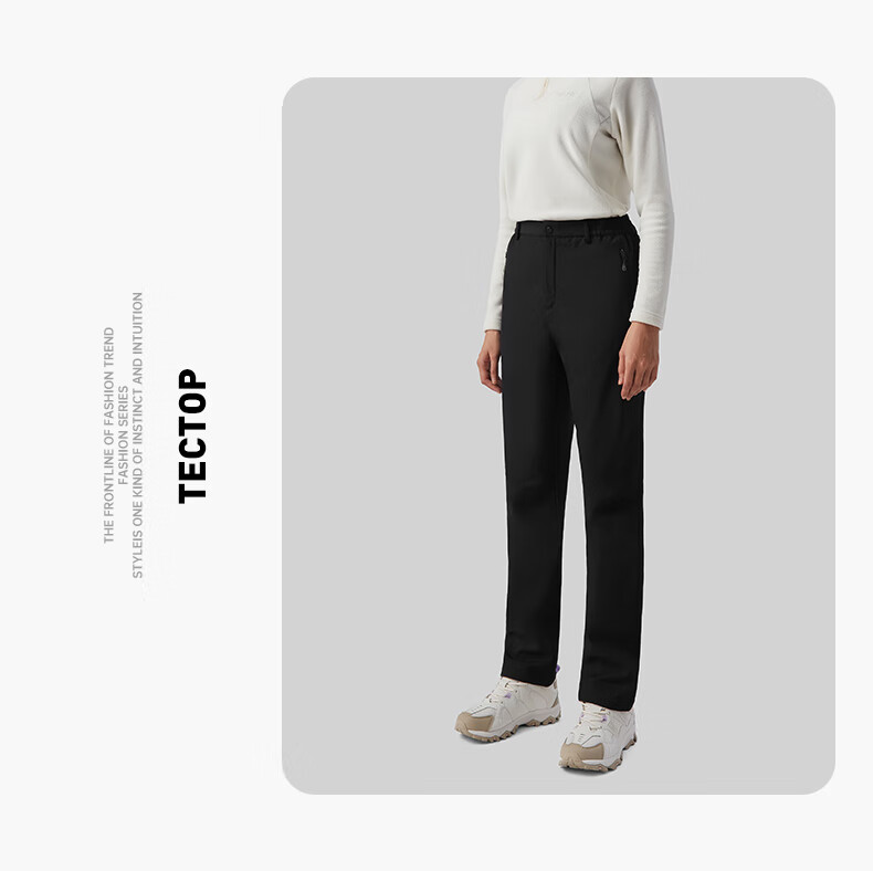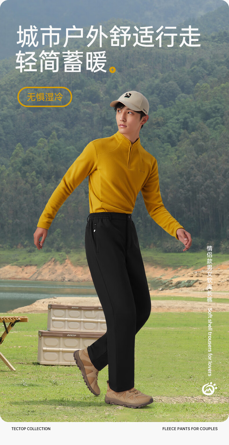 探拓TECTOP户外冲锋裤情侣软壳裤男内里加绒保暖休闲裤长裤弹力宽松登山裤子