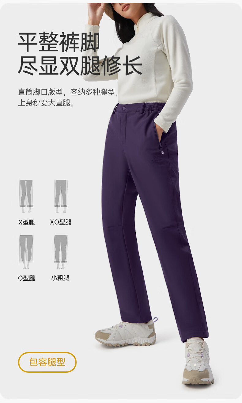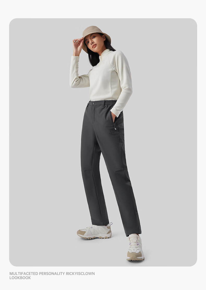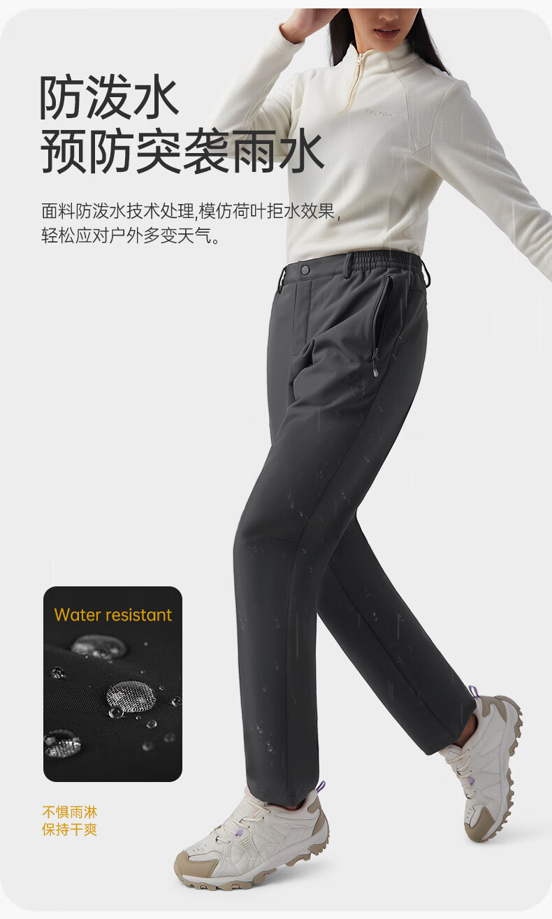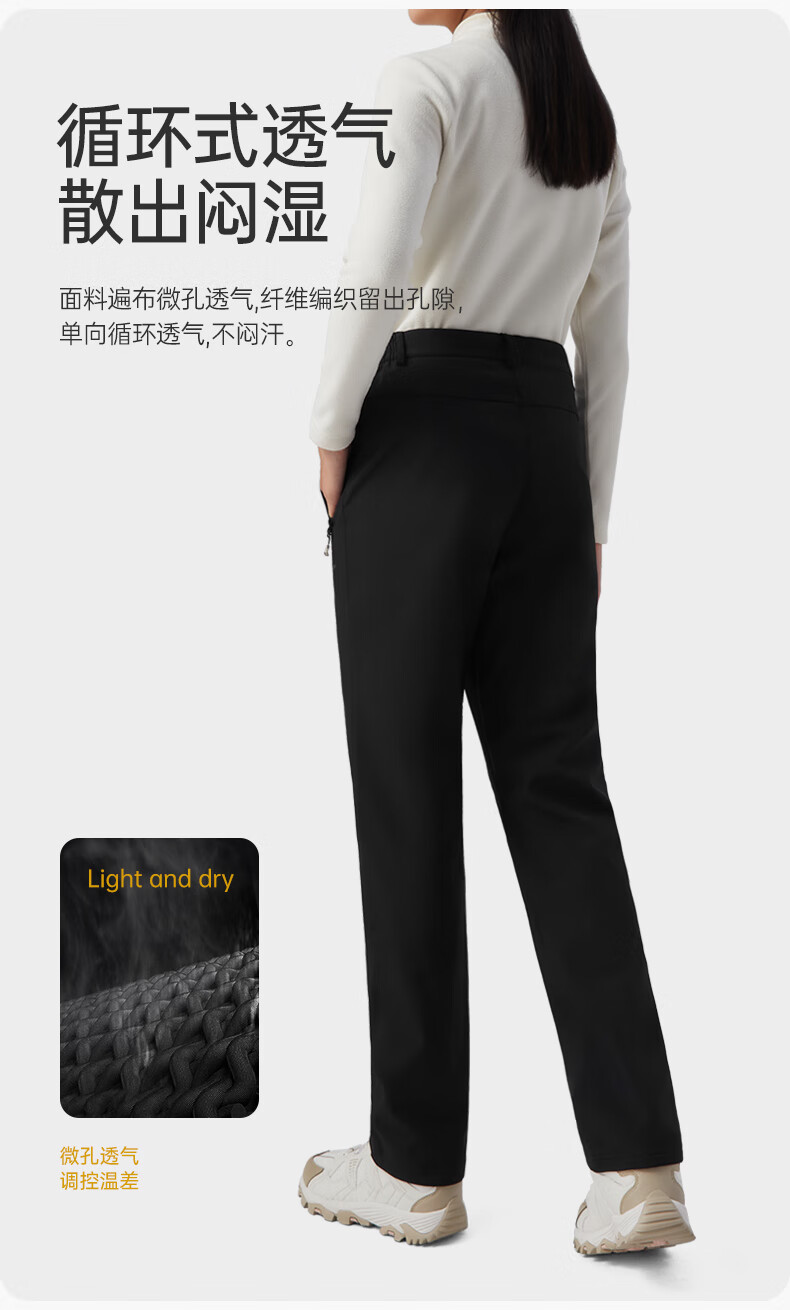 探拓TECTOP户外冲锋裤情侣软壳裤男内里加绒保暖休闲裤长裤弹力宽松登山裤子