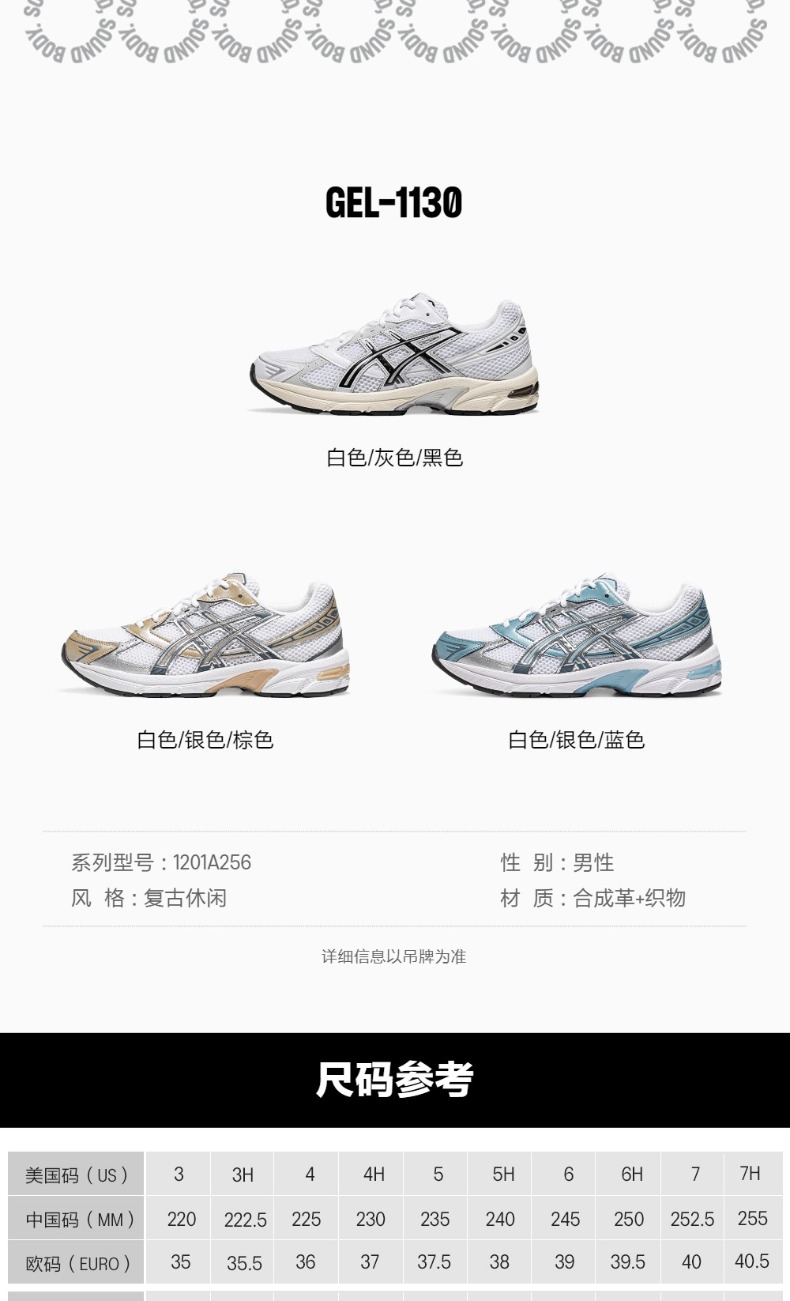 ASICS亚瑟士GEL-1130男女运动鞋情侣耐磨运动时尚复古休闲鞋1201A256