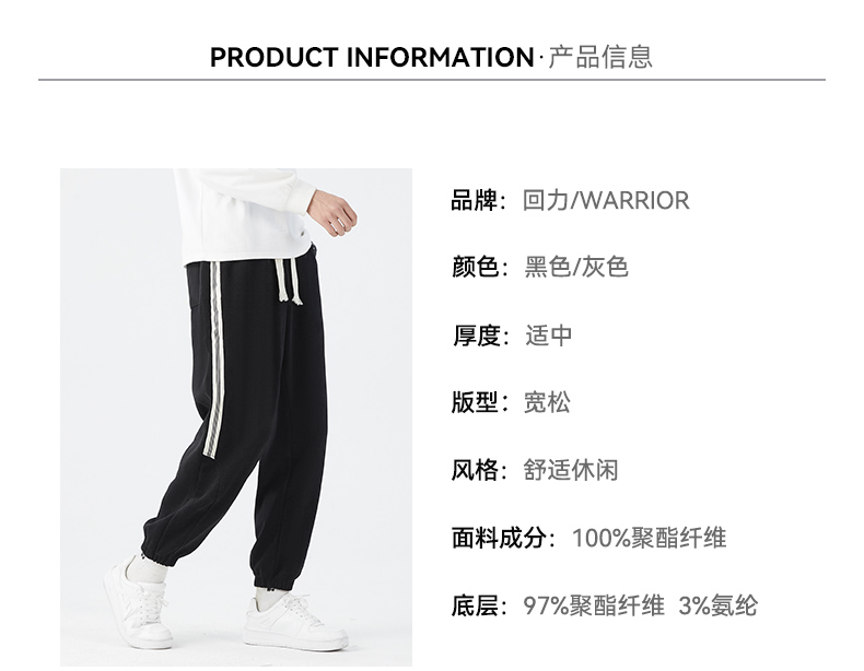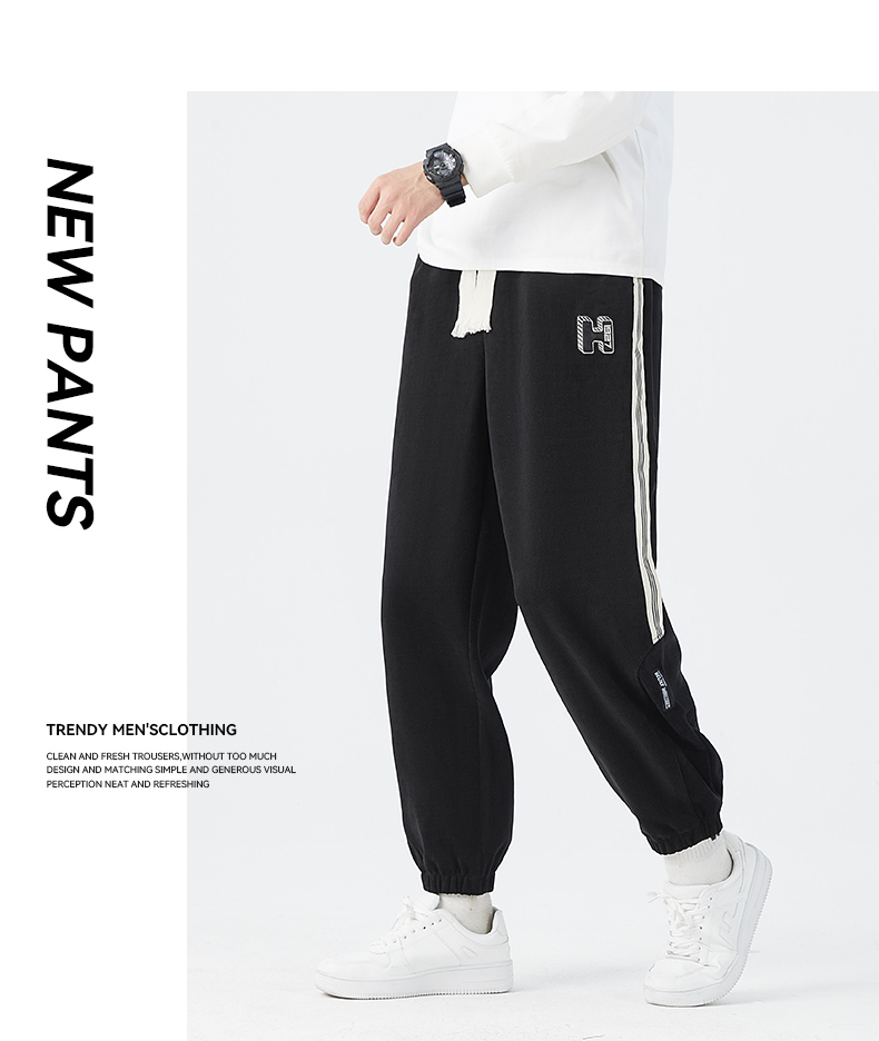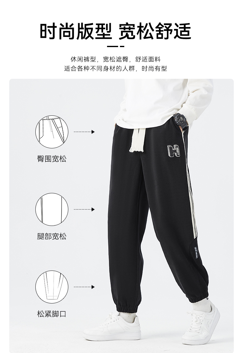 回力黑色裤子男士灯芯绒春秋季束脚裤2025胖子大码宽松休闲运动裤