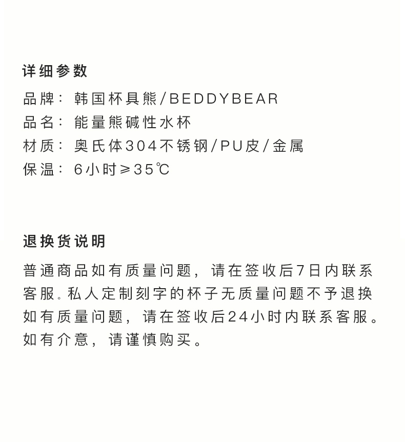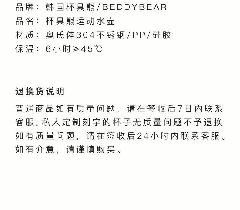 韩国杯具熊BEDDYBEAB能量碱性矿物质水壶水杯BJX10