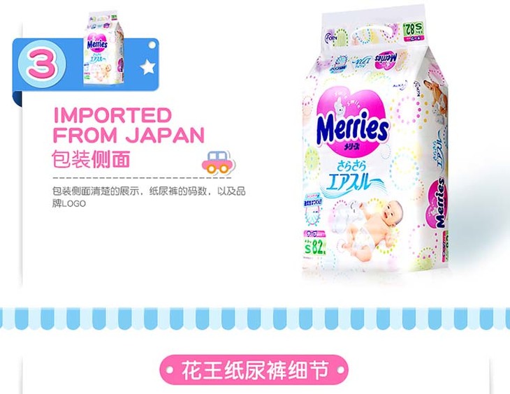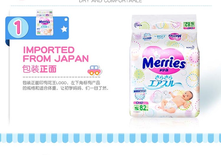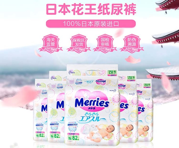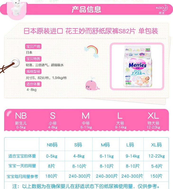 【保税仓】日本花王Merries纸尿裤 S82片(4-8kg)