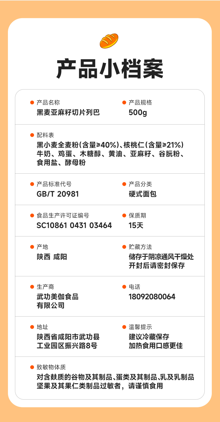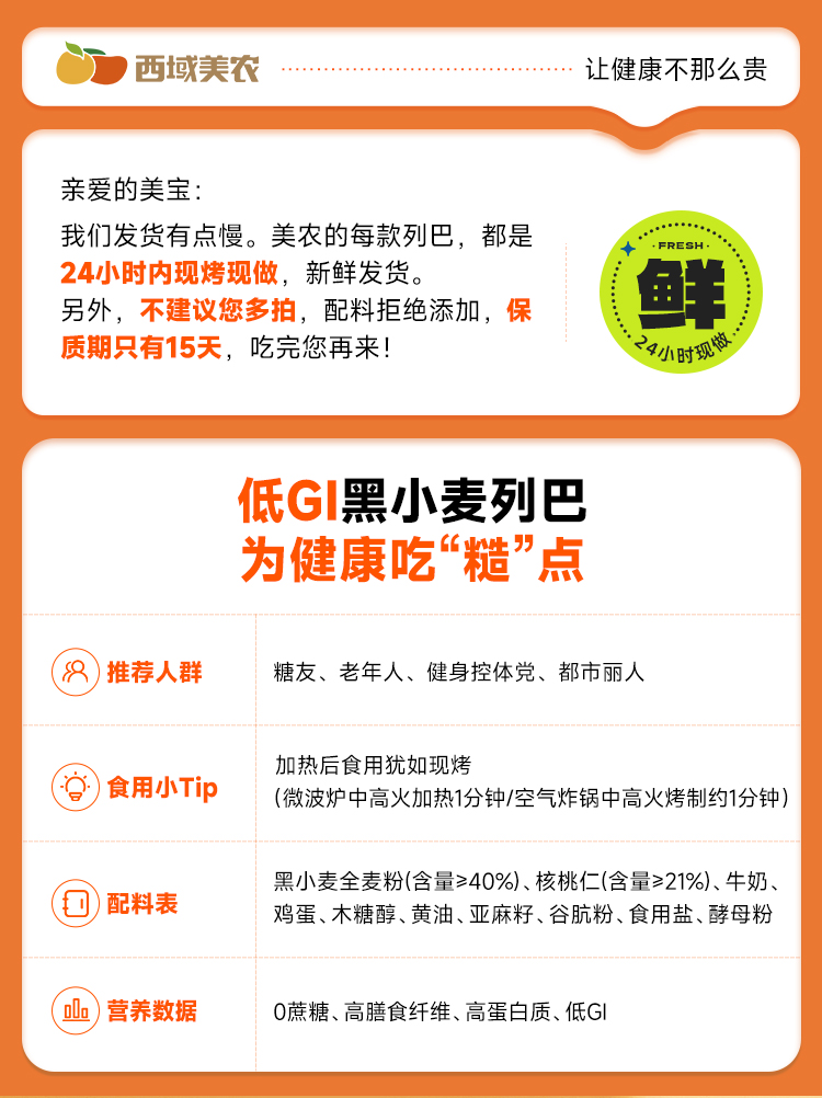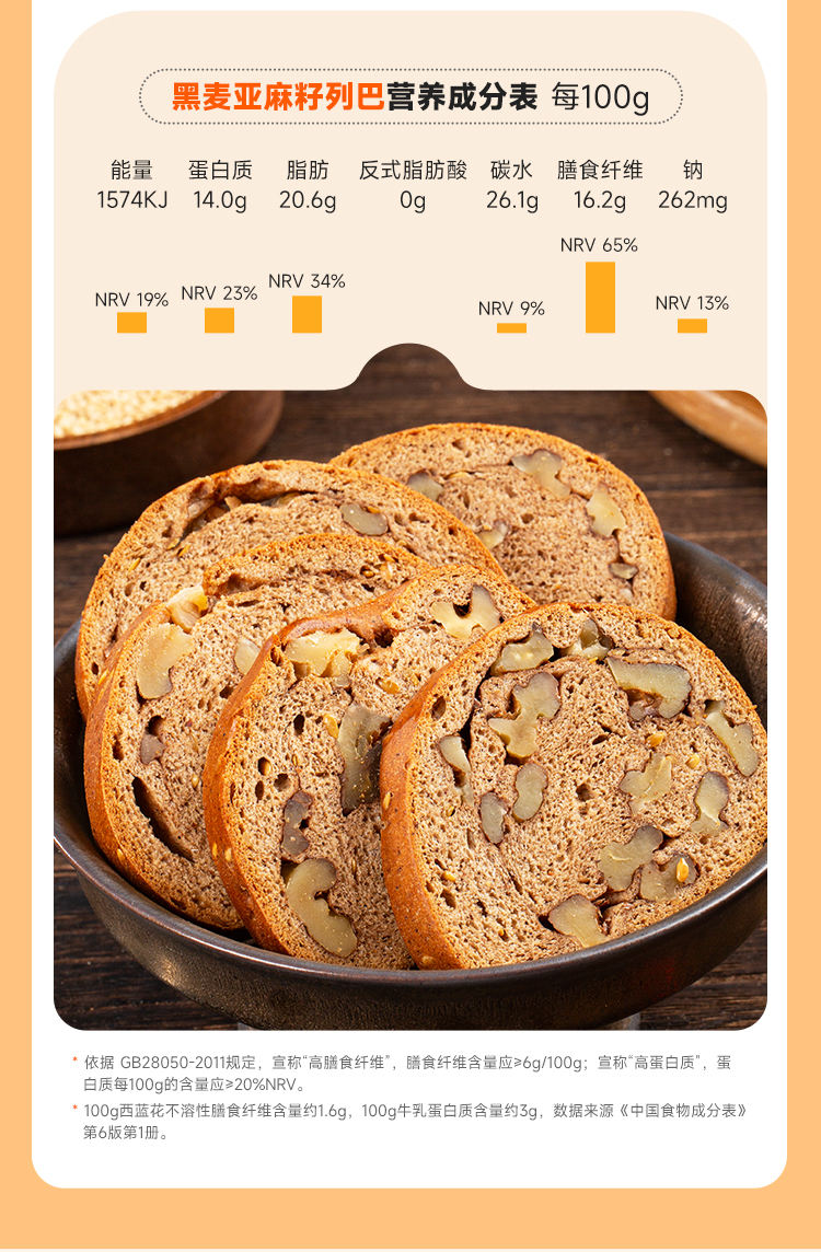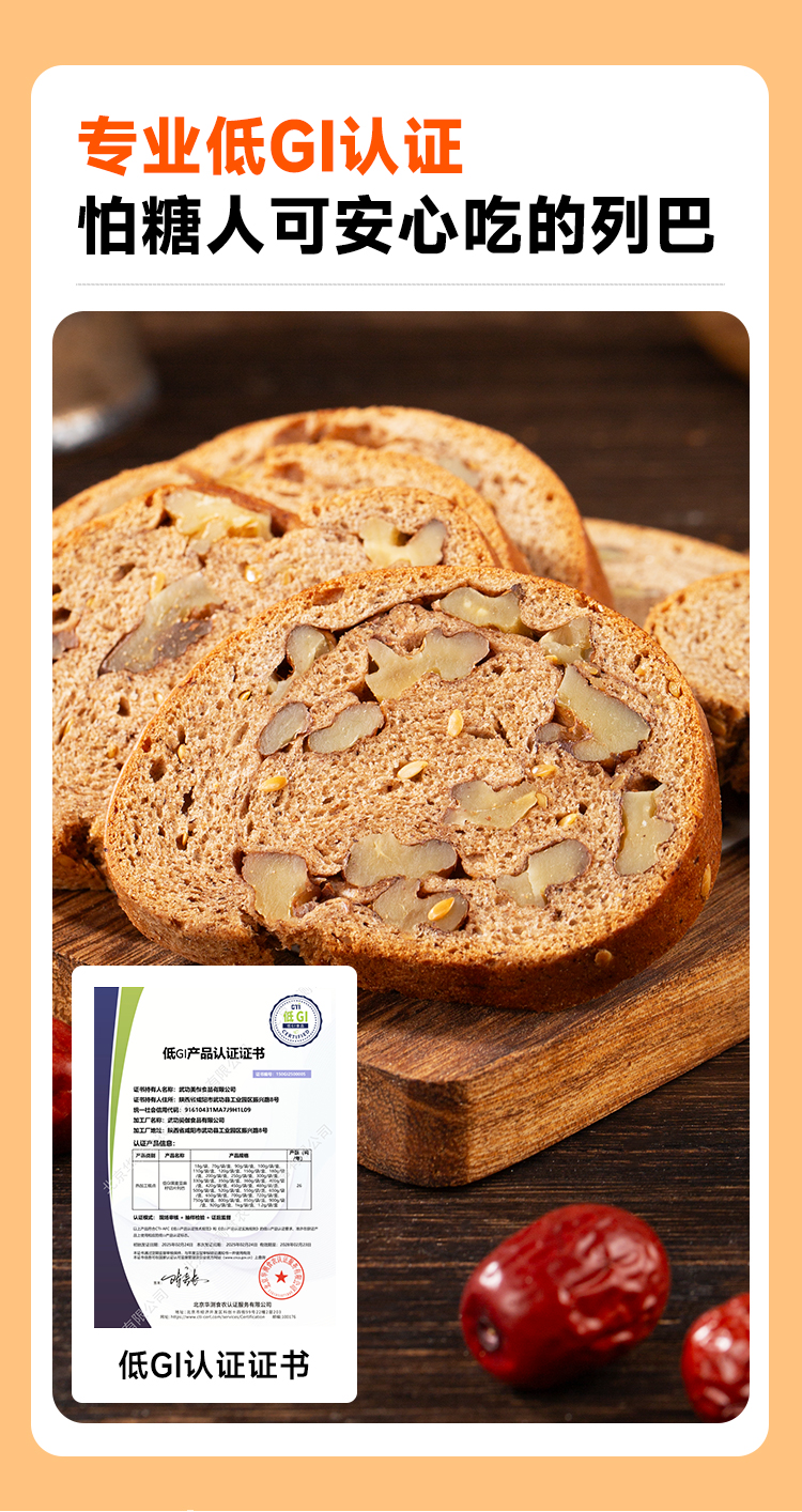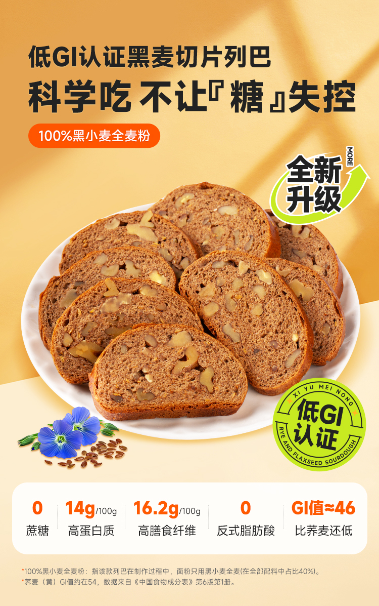 西域美农 低GI黑麦亚麻籽 低GI认证 无蔗糖配方 切片列巴500克/箱