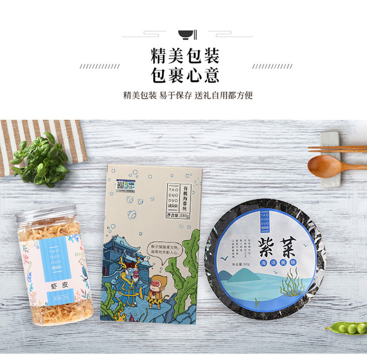 姚朵朵 海产干货组合(虾皮+紫菜+有机海带丝) 320g