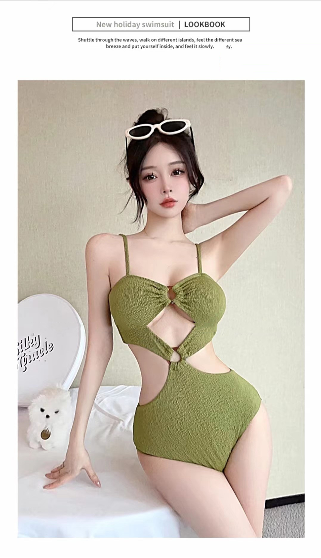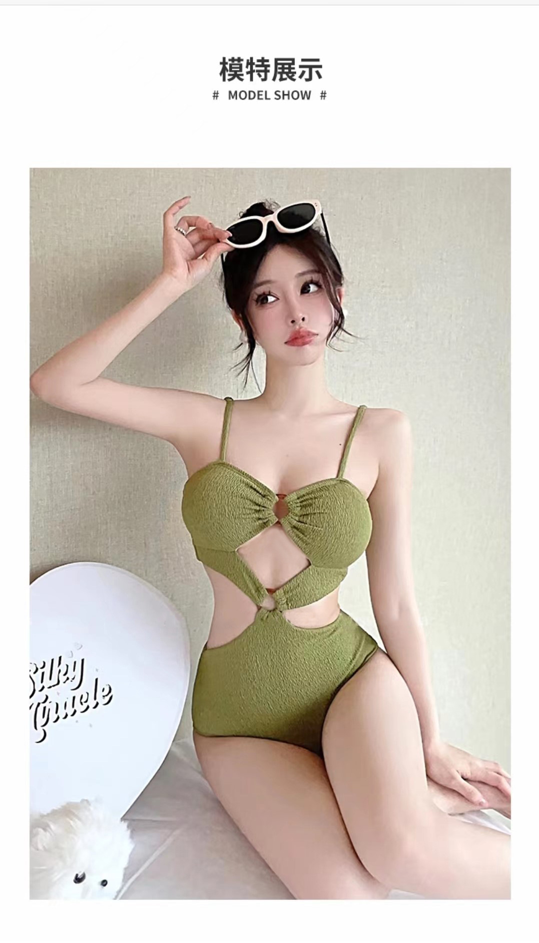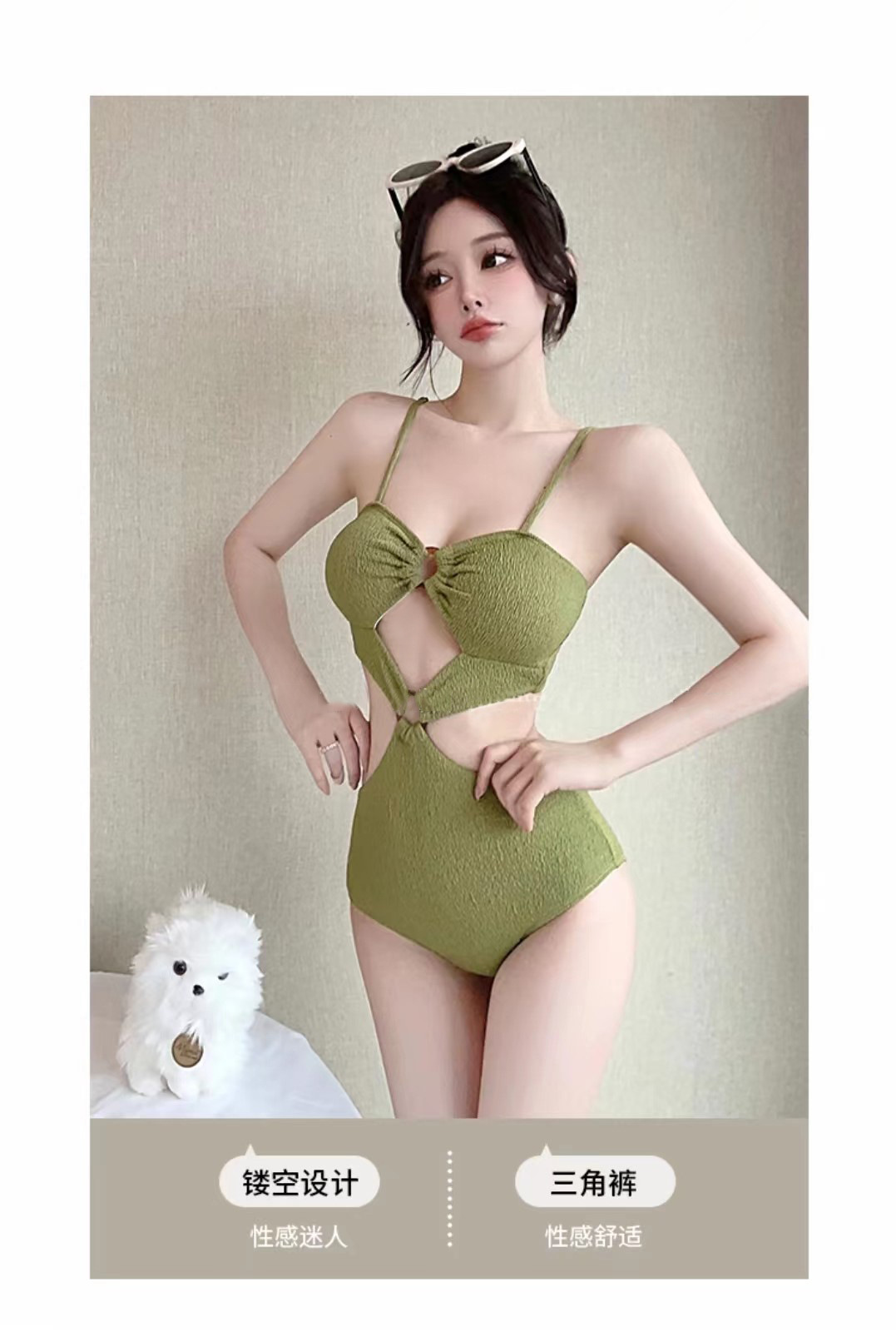 【吊带连体泳衣女】纯色时尚性感比基尼 纯欲网红辣妹 温泉泳装