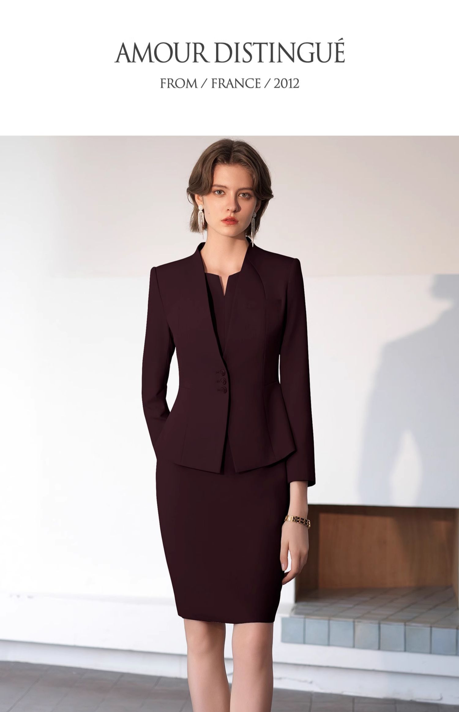 IWY/安可拉红色西装两件套高端职业装时尚气质工作服连衣裙套装秋季C2065-R+Q1206-R