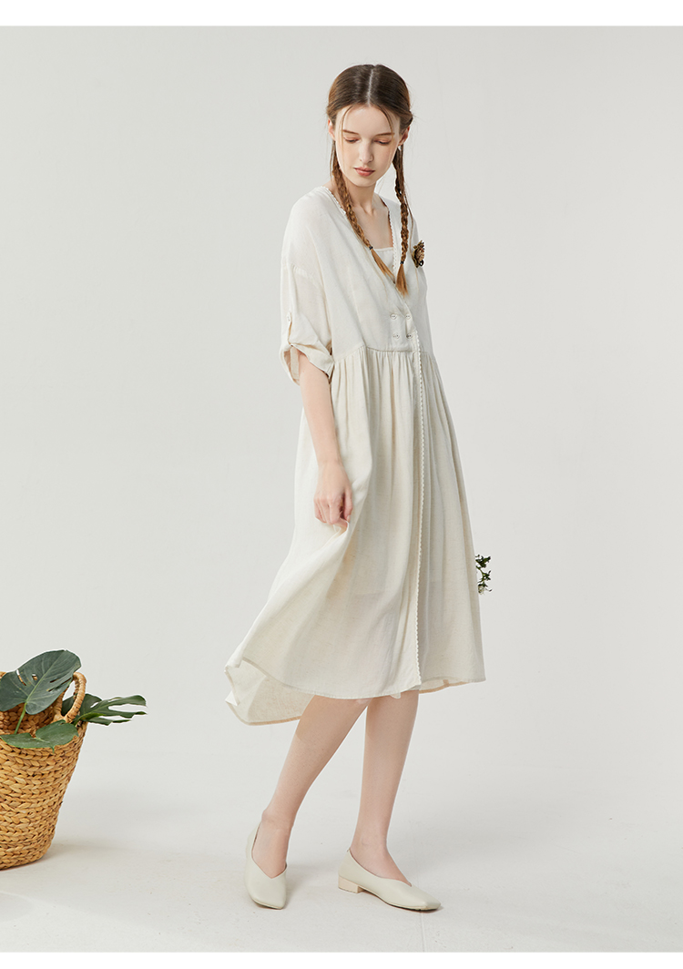 Famecoco范可儿短袖连衣裙吊带两件套裙装高级感夏季宽松中长裙F223FA048