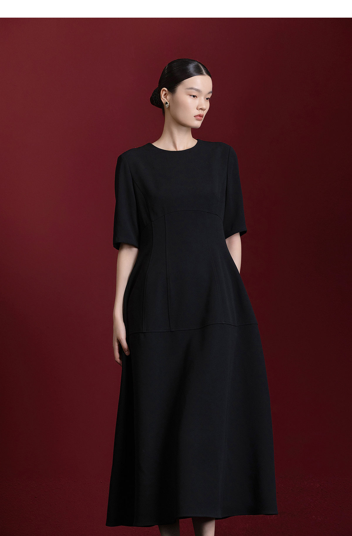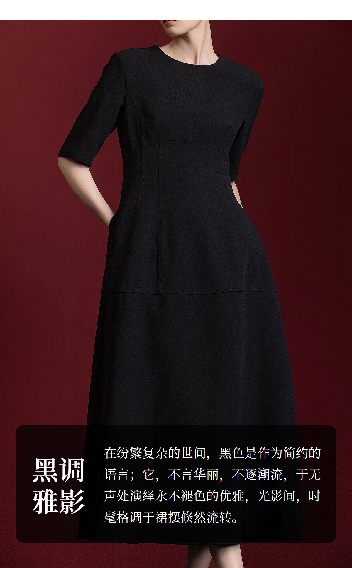 【林栖设计小店】优雅连衣裙复古百搭气质修身小黑裙显瘦2025春季新品黑色长裙女1951070