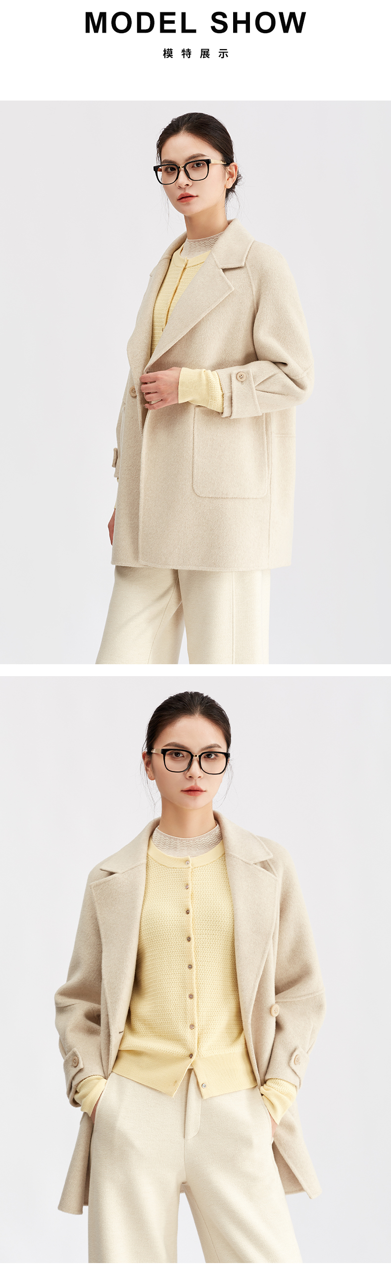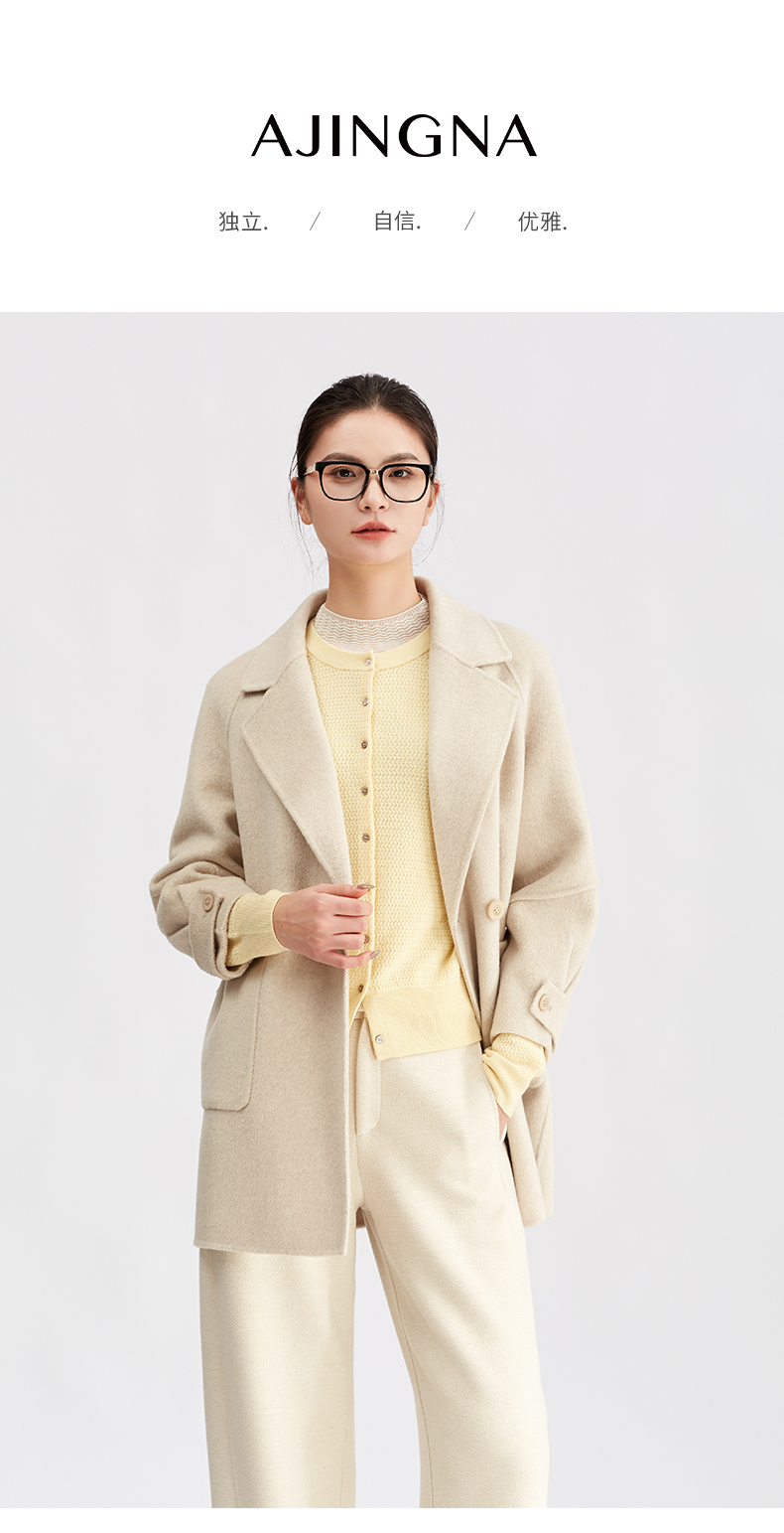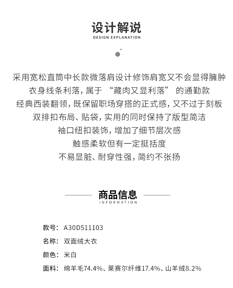 【商场同款】阿菁娜冬季新款通勤大衣微落肩直筒双排扣西装领 感挺括耐穿A30D511103