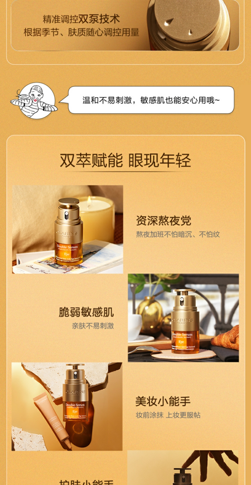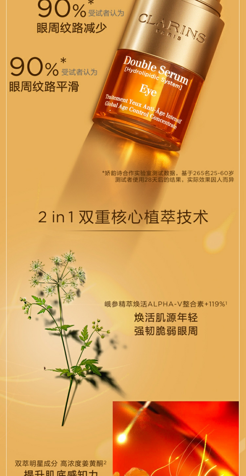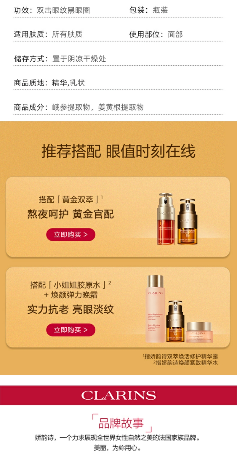 【YZ】Clarins/娇韵诗双萃焕活眼部精华眼霜淡化细纹紧致滋润 20ml