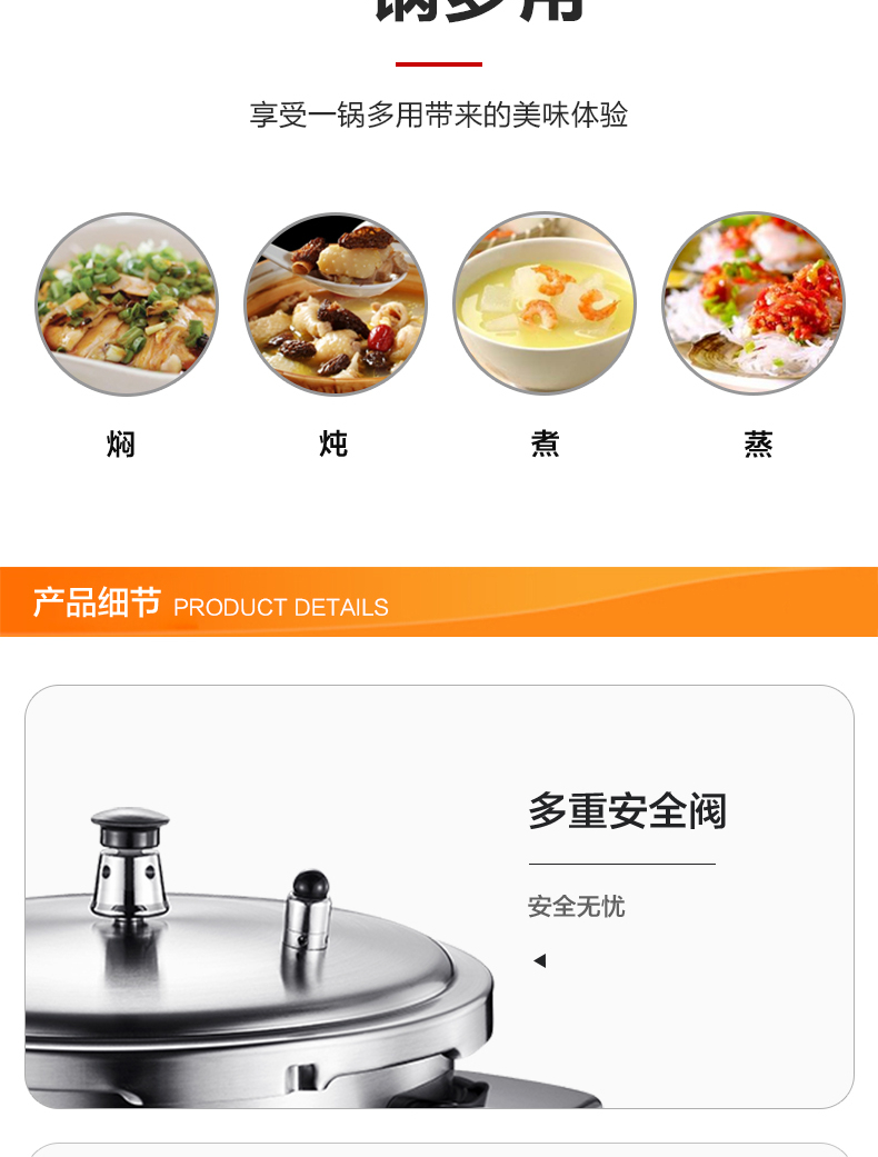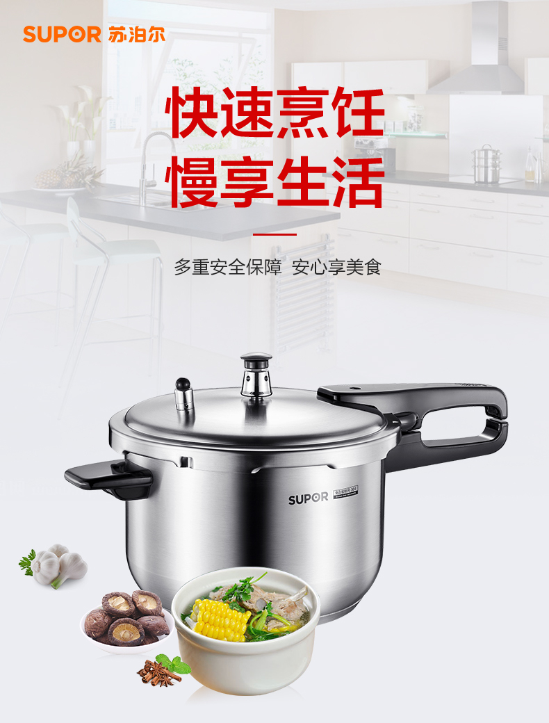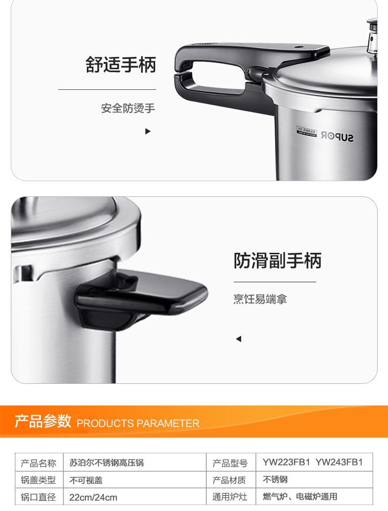 苏泊尔(SUPOR)304不锈钢 高压锅 24cm 压力锅 燃气通用 3-6大号 YW243FB1