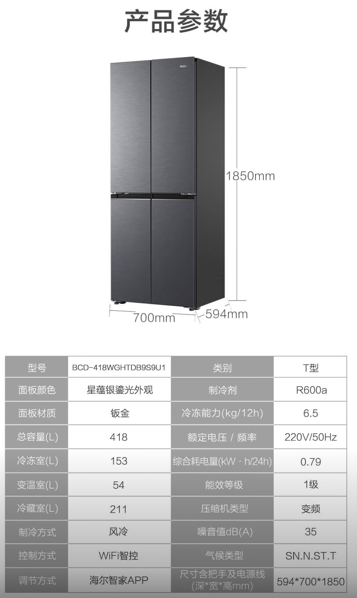 海尔(Haier)冰箱 BCD-418WGHTDB9S9U1