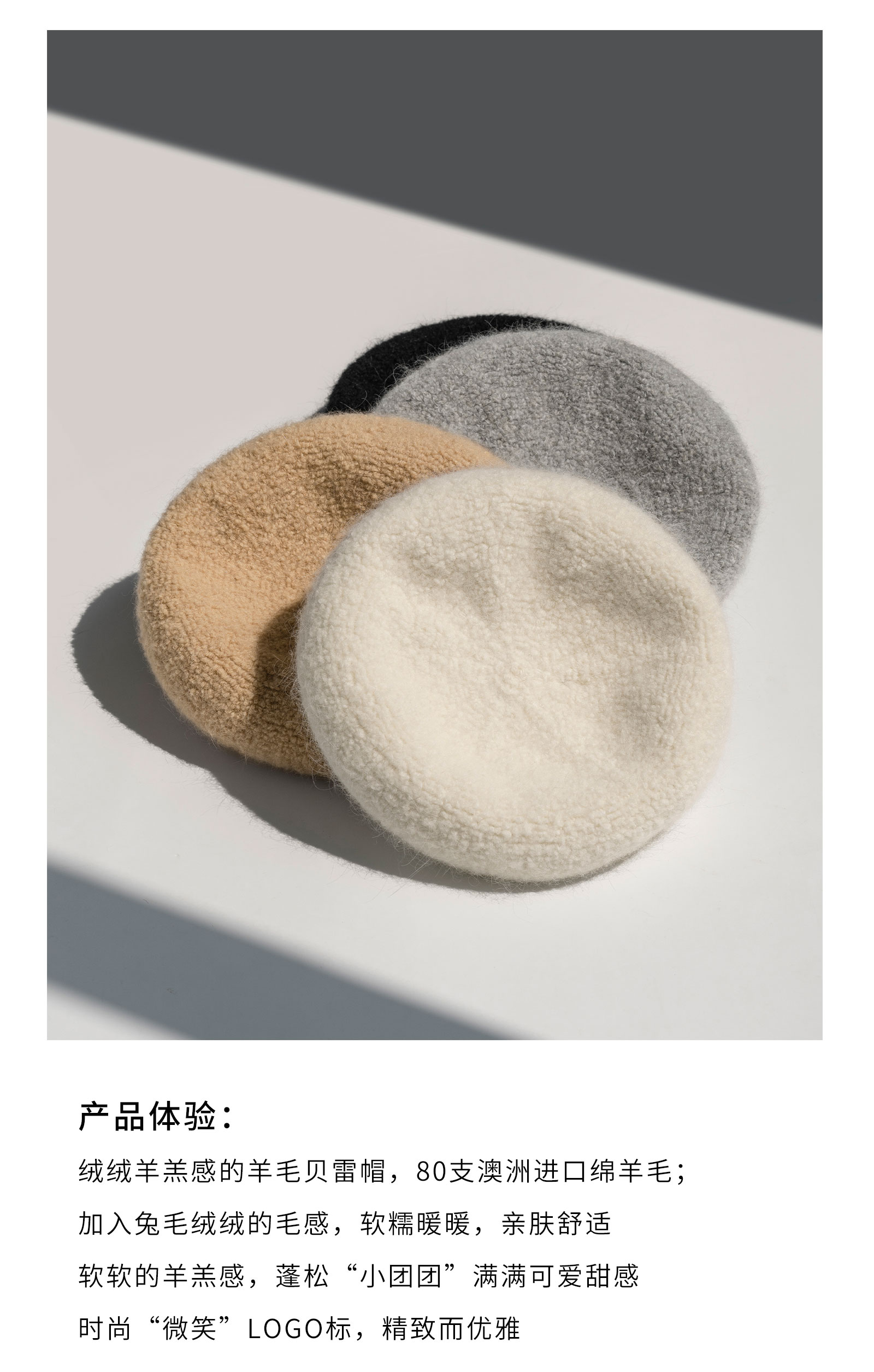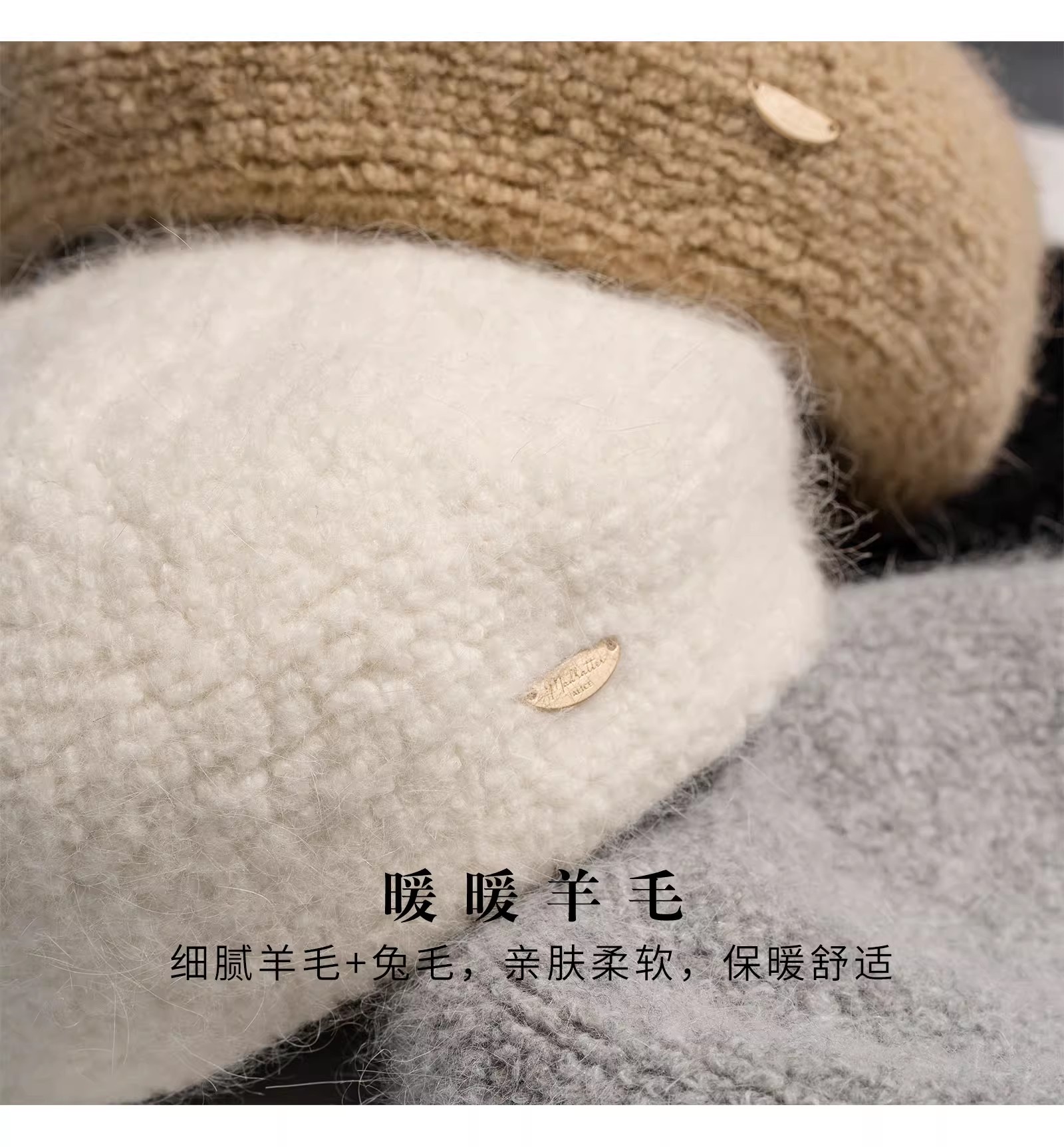 【林栖好物】复古纯色羊毛呢贝雷帽子女百搭显脸小画家帽冬新头围小慎拍