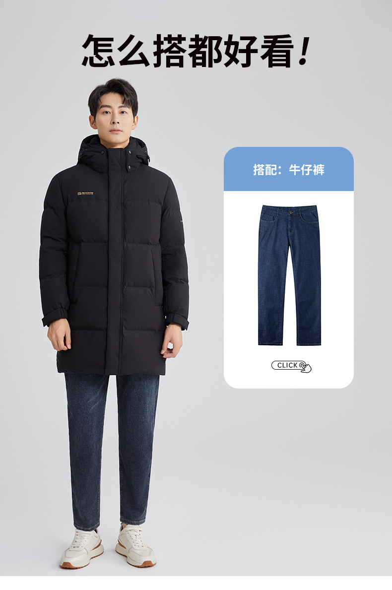 圣得西男装中长款可拆卸连帽加厚羽绒服2362942763